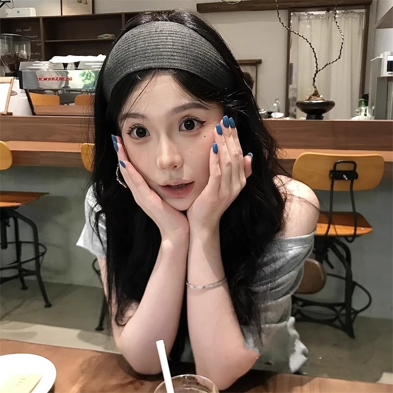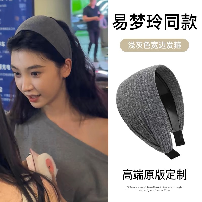 Yi Mengling 같은 스타일 회색 니트 넓은 챙이 달린 머리띠 가을과 겨울 높은 패션 기질 머리띠 높은 두개골 탑 워시 페이스 헤드웨어스토어 가기