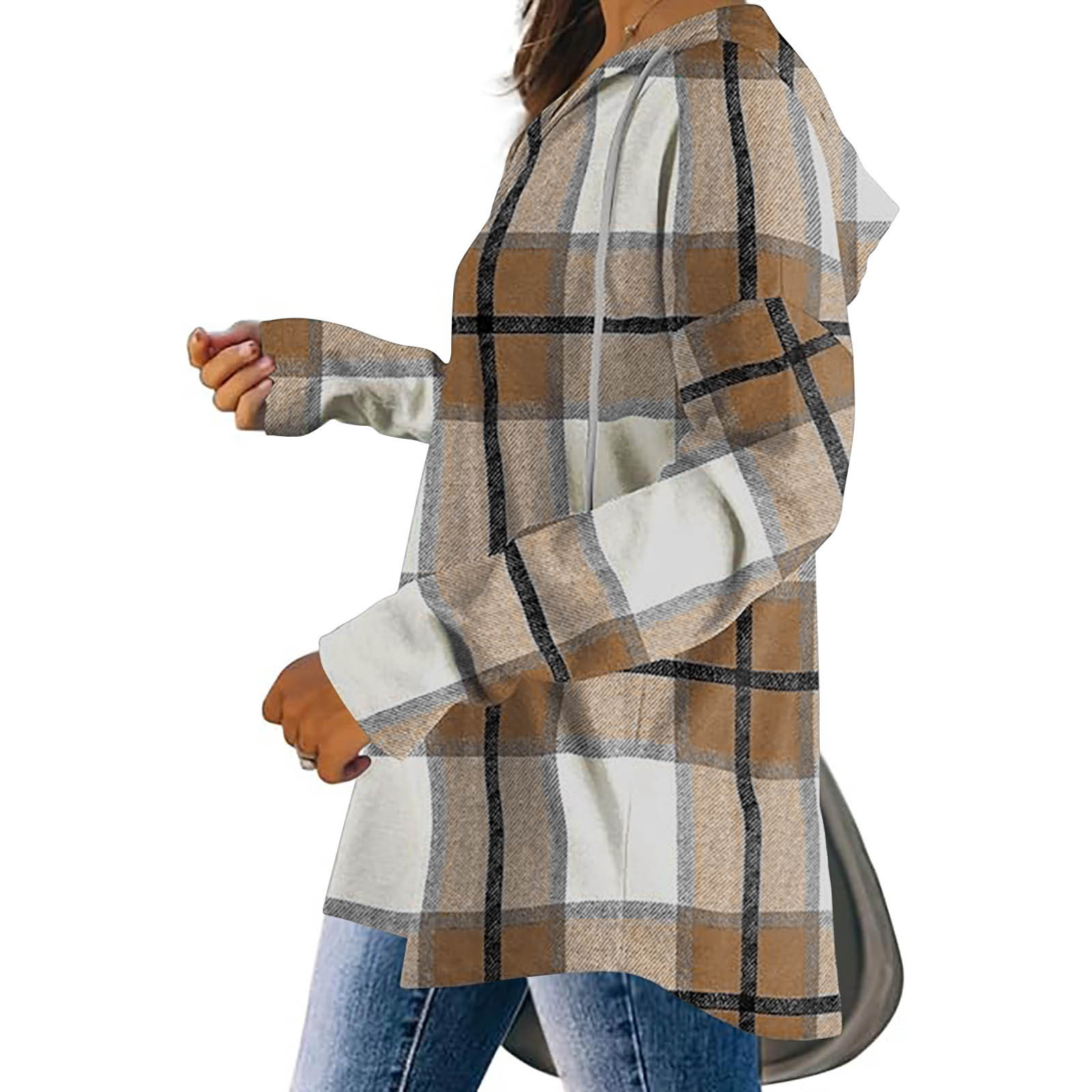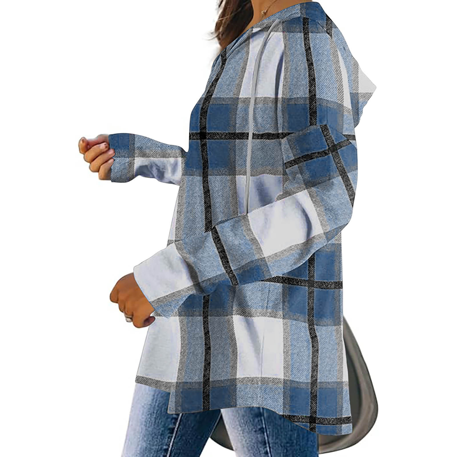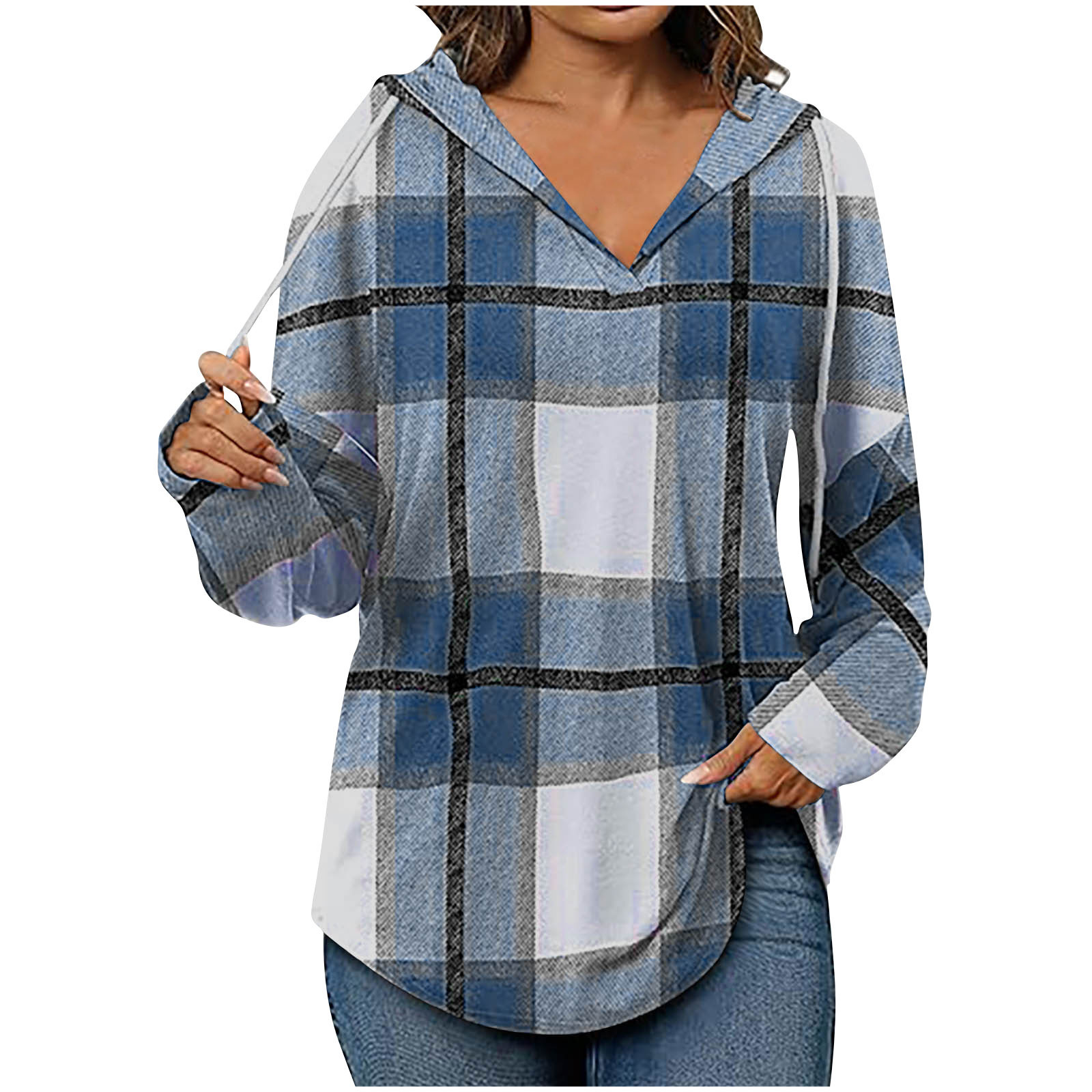 유럽과 미국의 국경 2024 후드 풀오버 V-Neck 양모 배치되지 않은 서랍 캐주얼 체크 무늬 여성용 긴팔 셔츠스토어 가기
