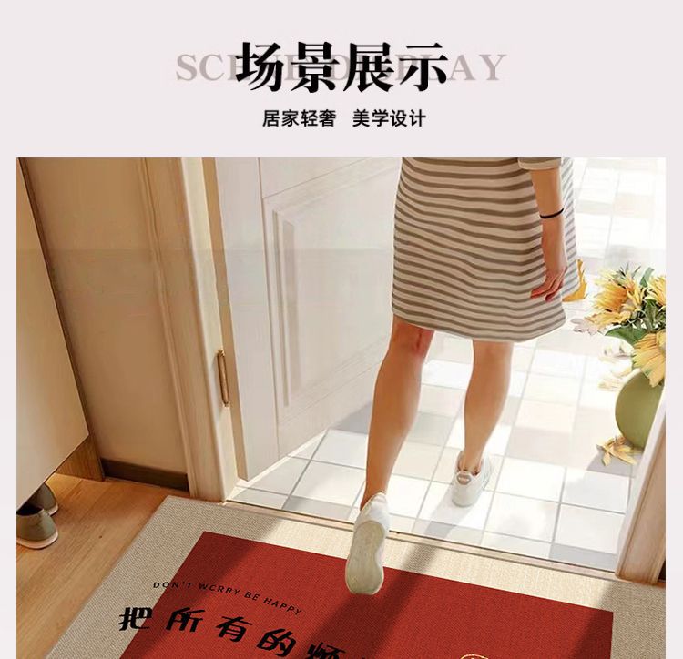 빨간 축제 입구 문 매트 현대 간단한 미끄럼 방지 먼지 방지 입구 매트 빛 고급 가정용 크리스탈 벨벳 바닥 매트스토어 가기