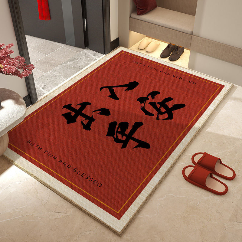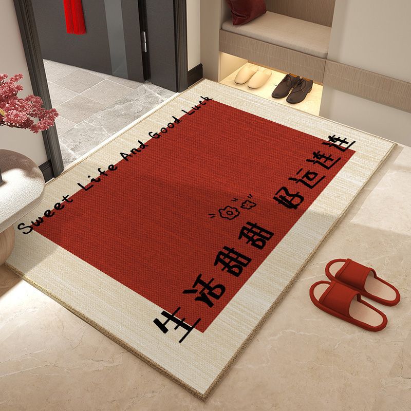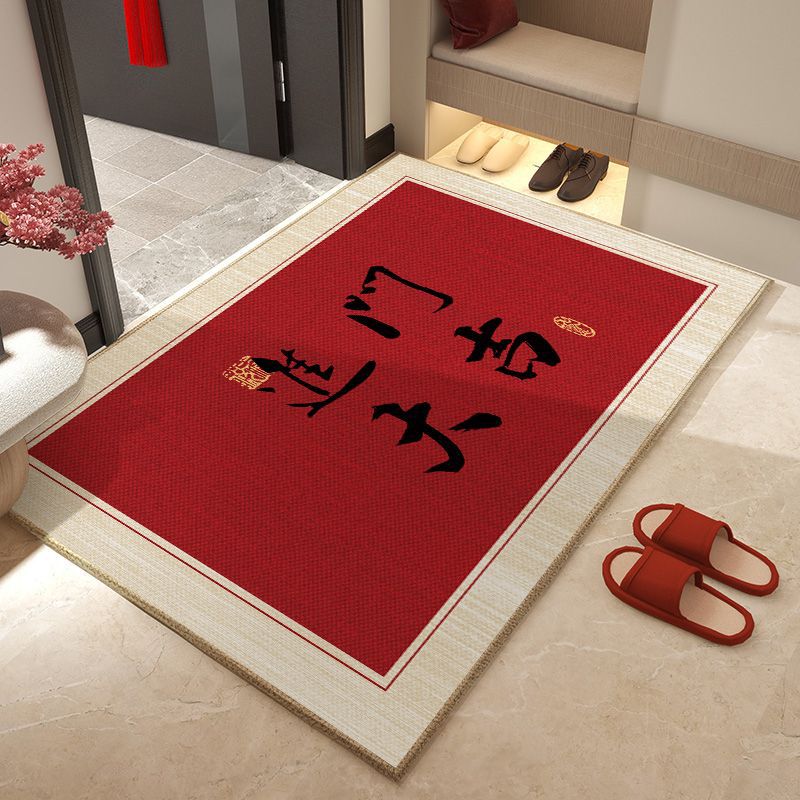 빨간 축제 입구 문 매트 현대 간단한 미끄럼 방지 먼지 방지 입구 매트 빛 고급 가정용 크리스탈 벨벳 바닥 매트