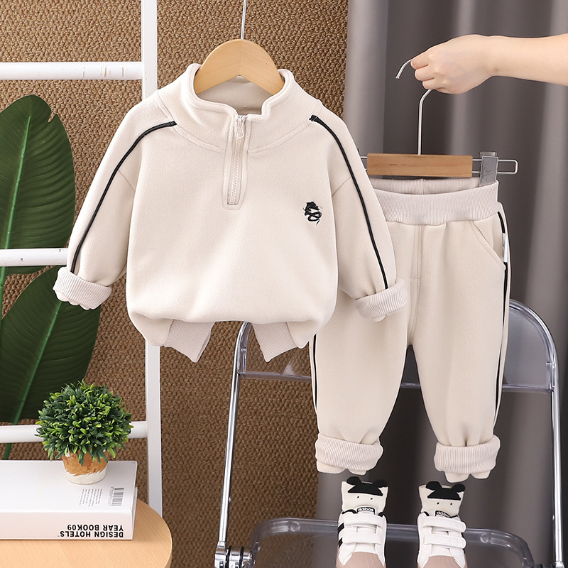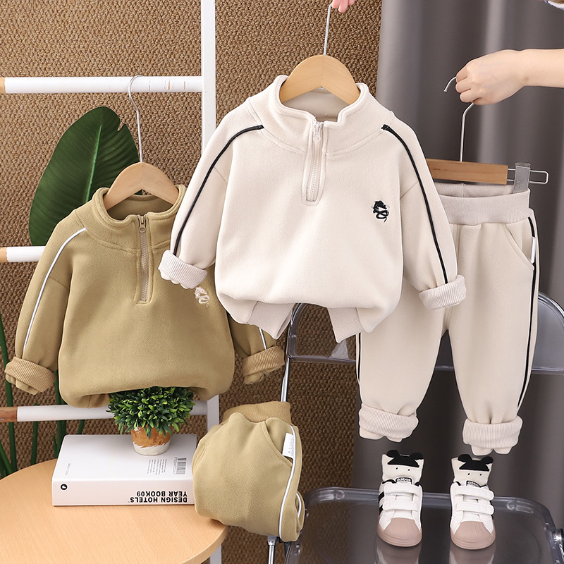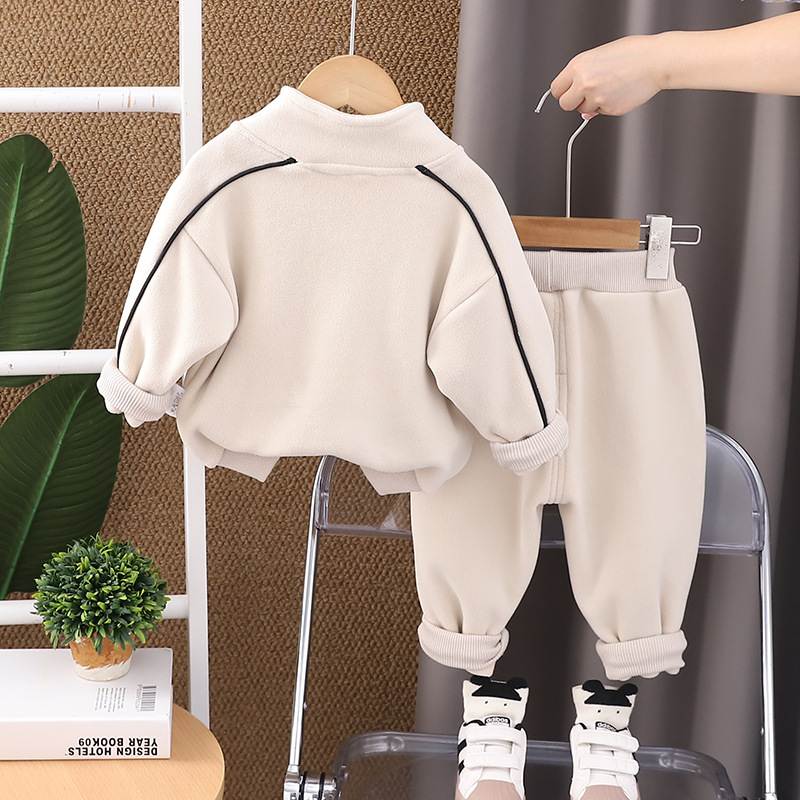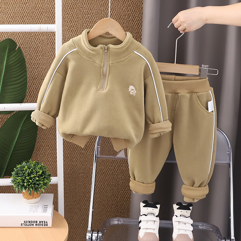 2024 년 새 가을과 겨울 한국 아동복 소년 벨벳 투피스 겨울 긴소매 어린이 세트 세대스토어 가기