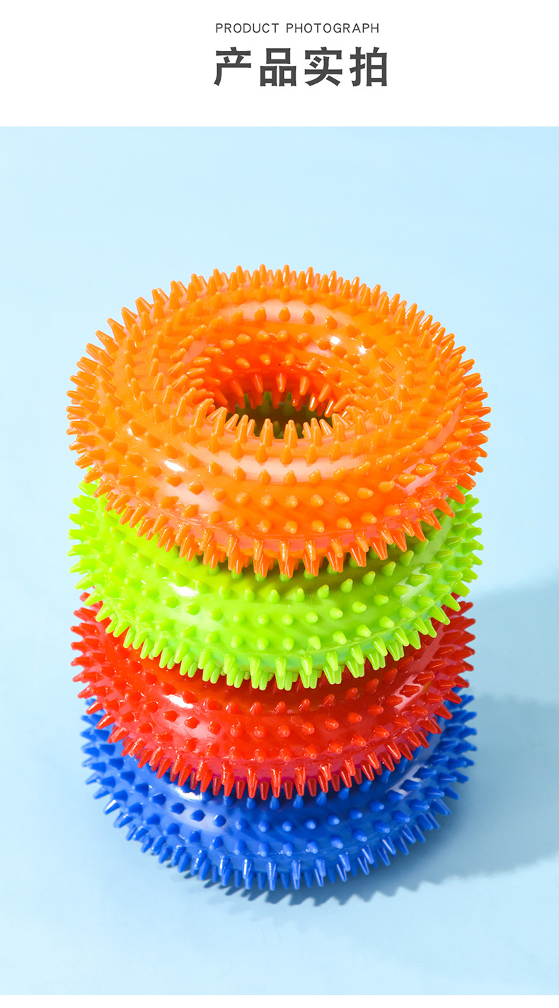 에이슨웰 소리나는 스파이크 링 강아지 씹기 장난감, 이갈이 방지, 내구성 있는 스파이크 링, 부드러운 고무 소재, 치아 청소, 잇몸 손상 없음