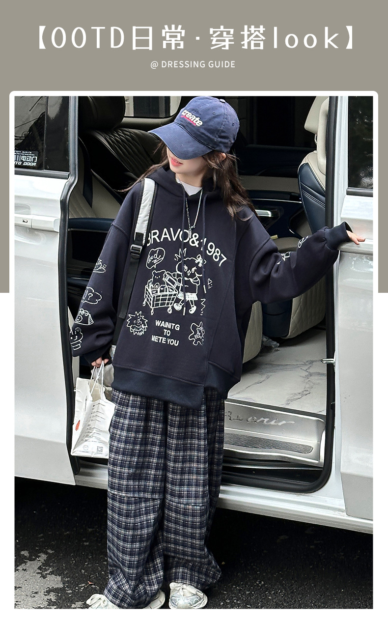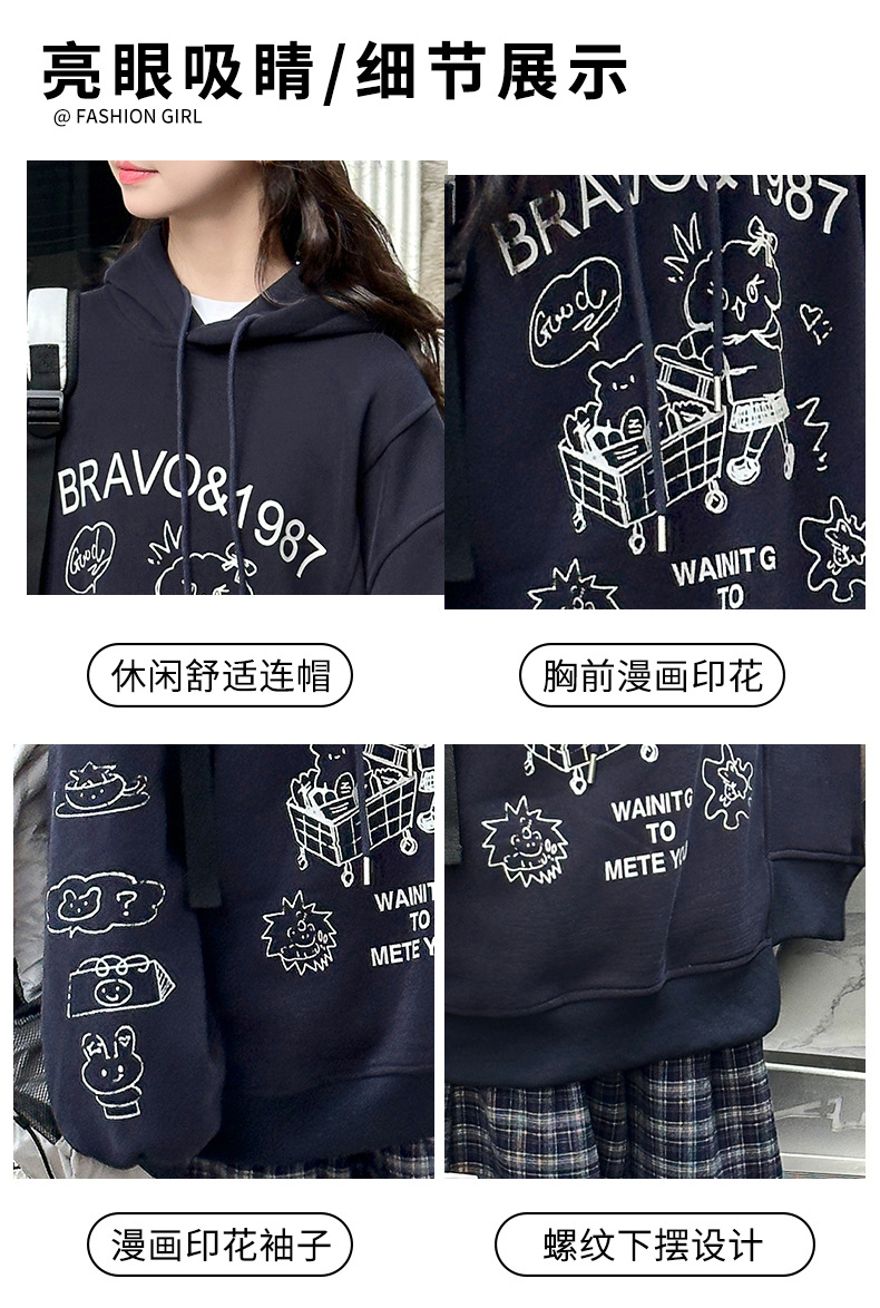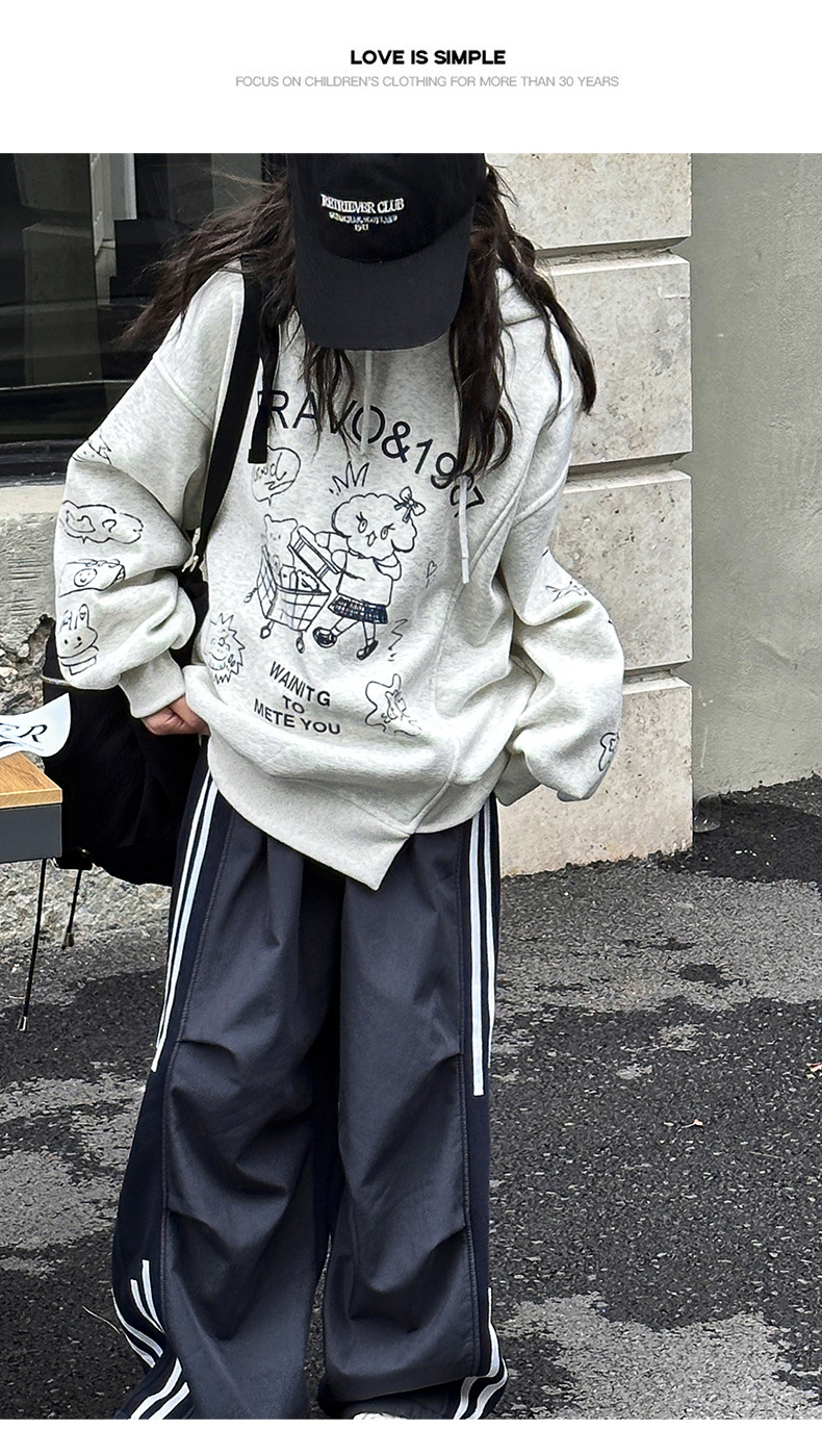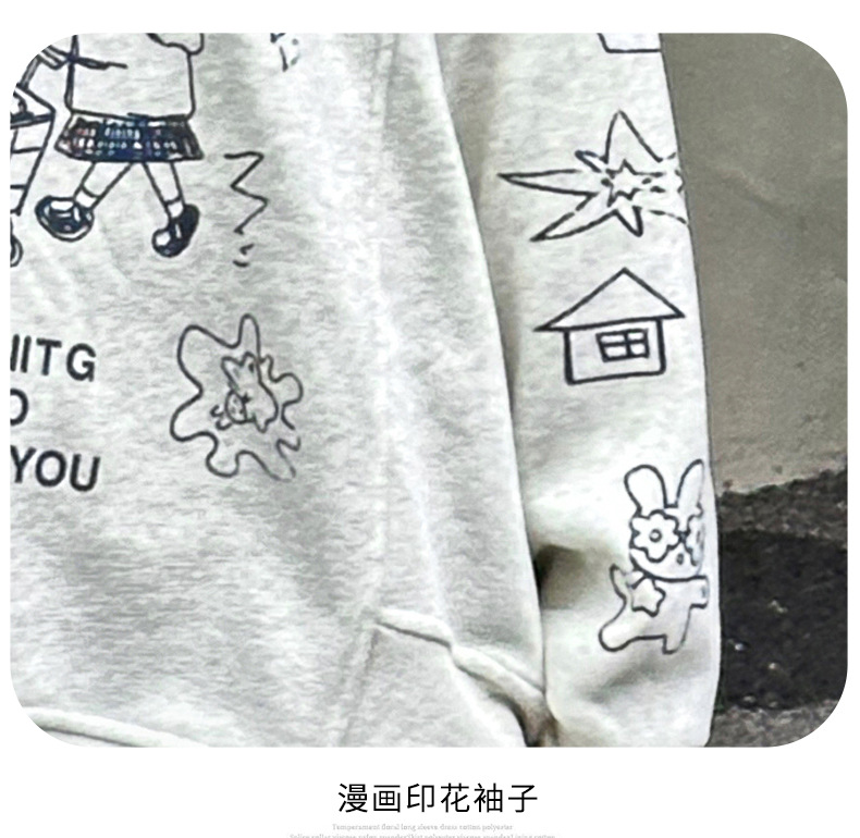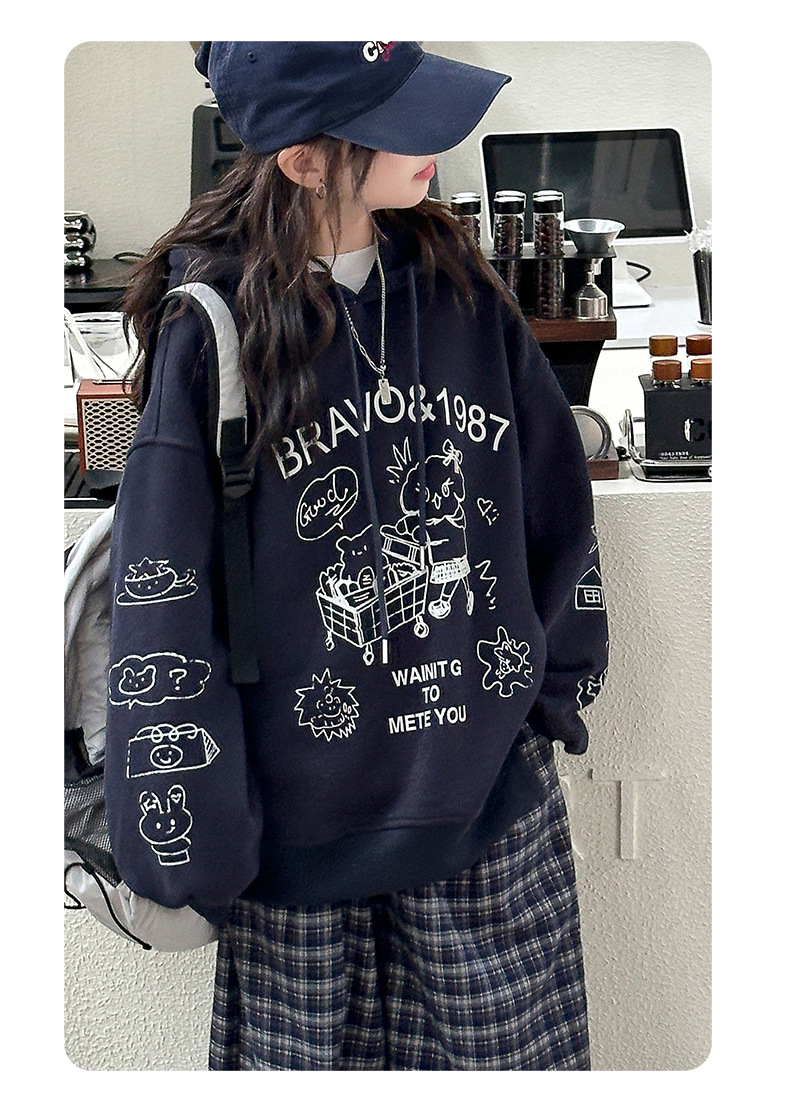 소녀 스웨터 가을과 겨울 기모 두꺼운 만화 인쇄 따뜻한 탑 2024 새로운 아동베이스 셔츠스토어 가기
