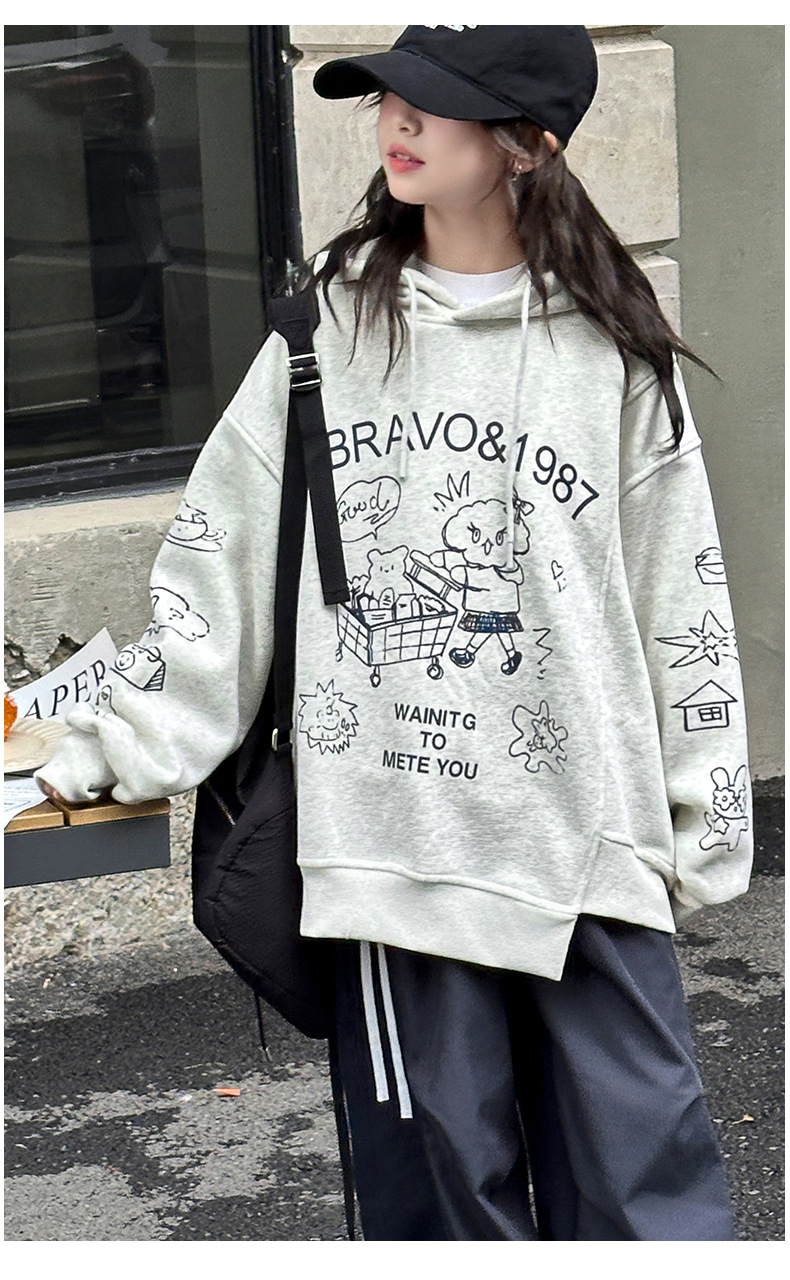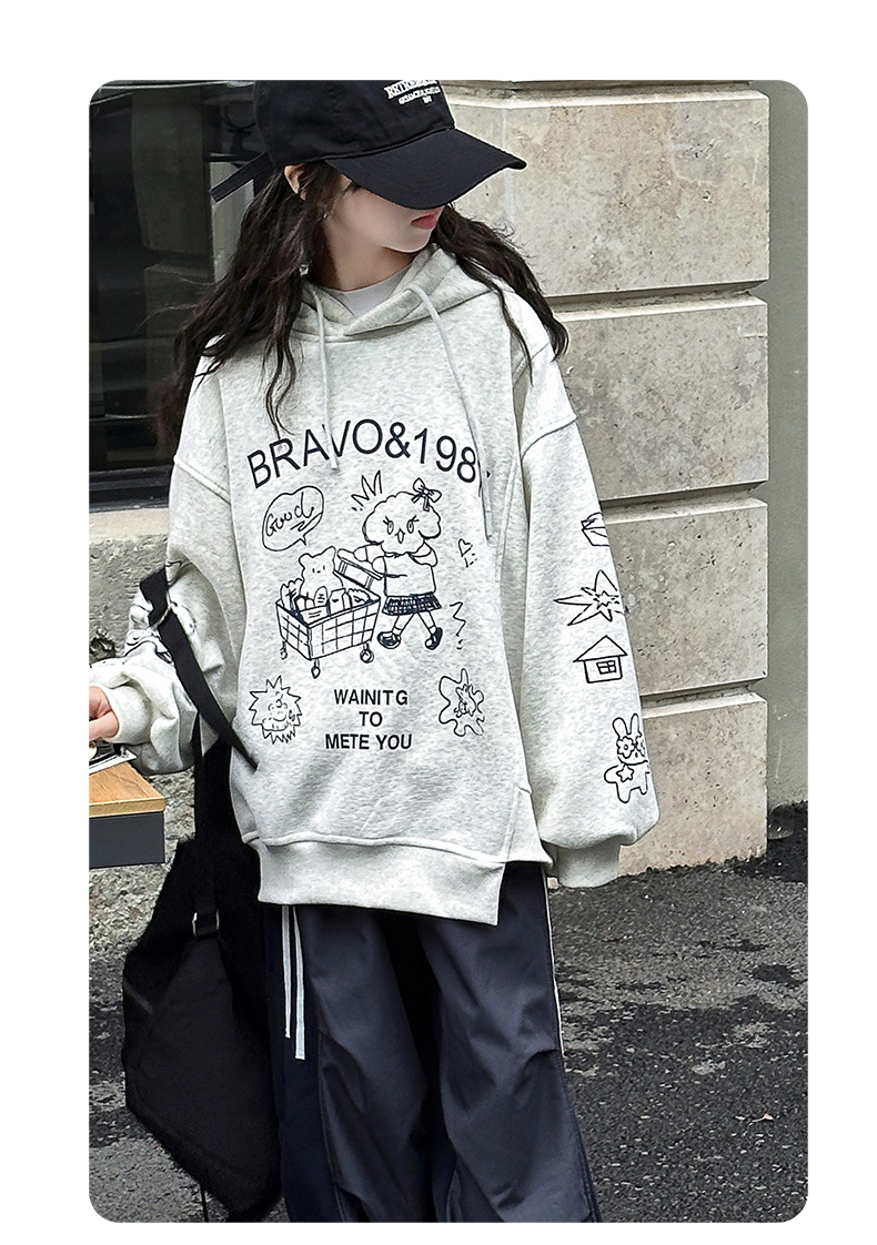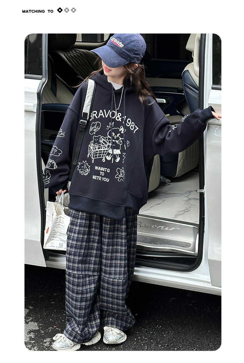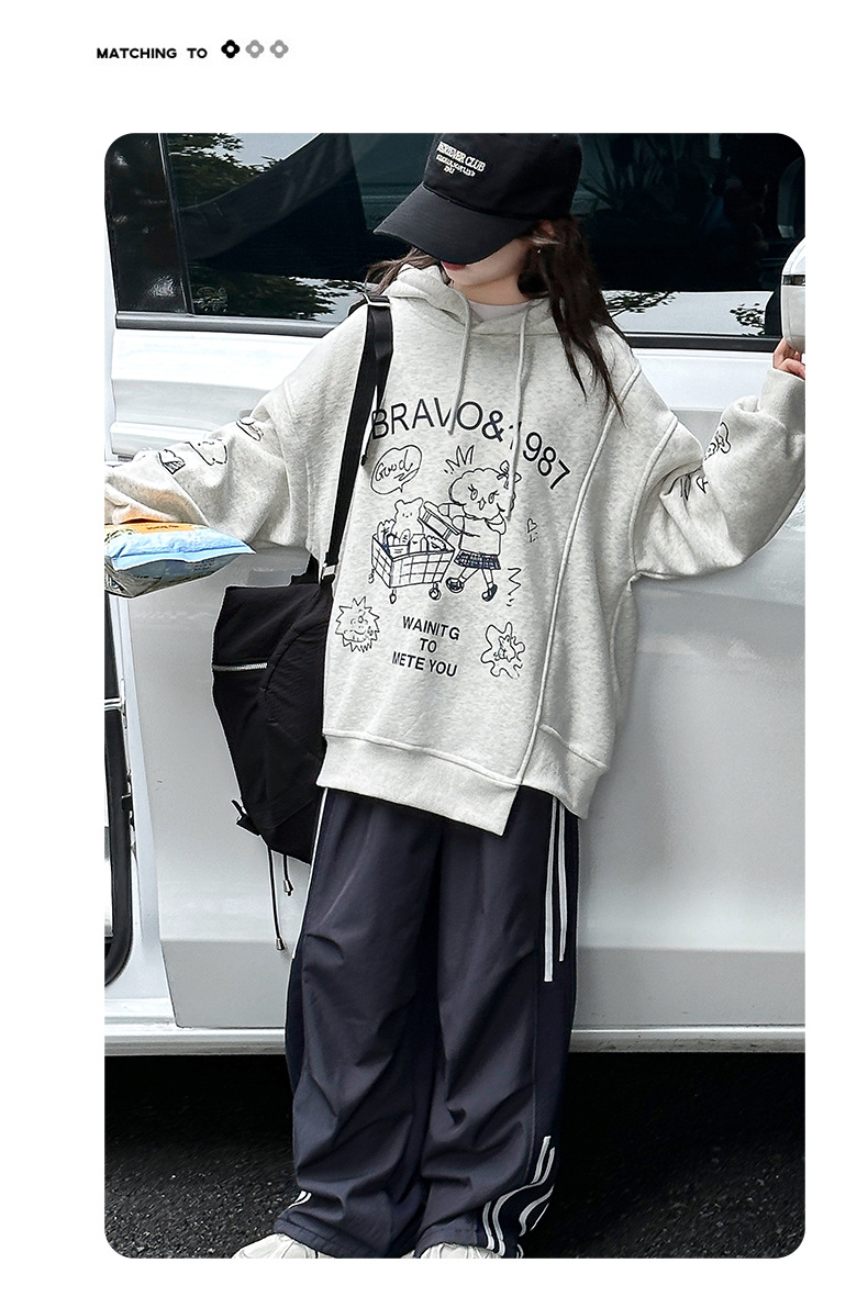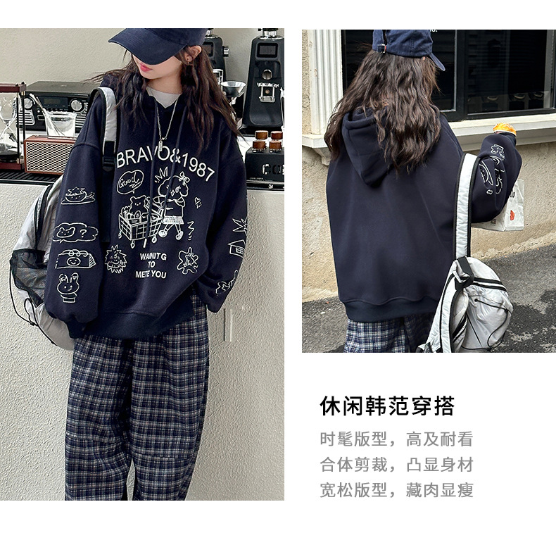 소녀 스웨터 가을과 겨울 기모 두꺼운 만화 인쇄 따뜻한 탑 2024 새로운 아동베이스 셔츠스토어 가기
