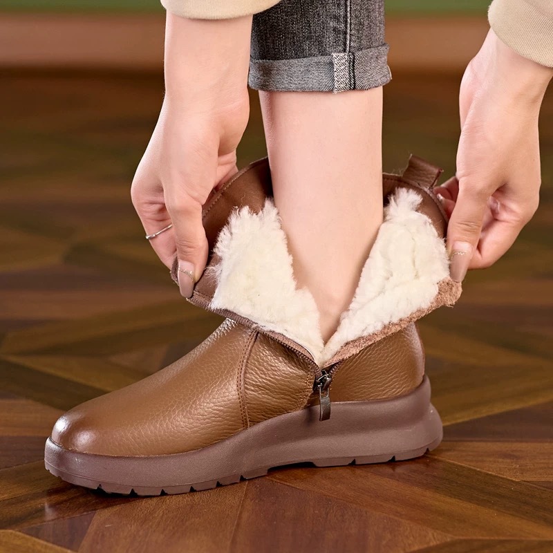 국경 1 층 소 가죽 가을과 겨울 새로운 마틴 부츠 여성의 두꺼운 밑창 증가 된 양모 여성용 가죽 부츠 기모 두껍게 캐주얼