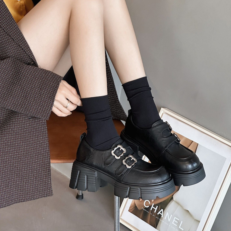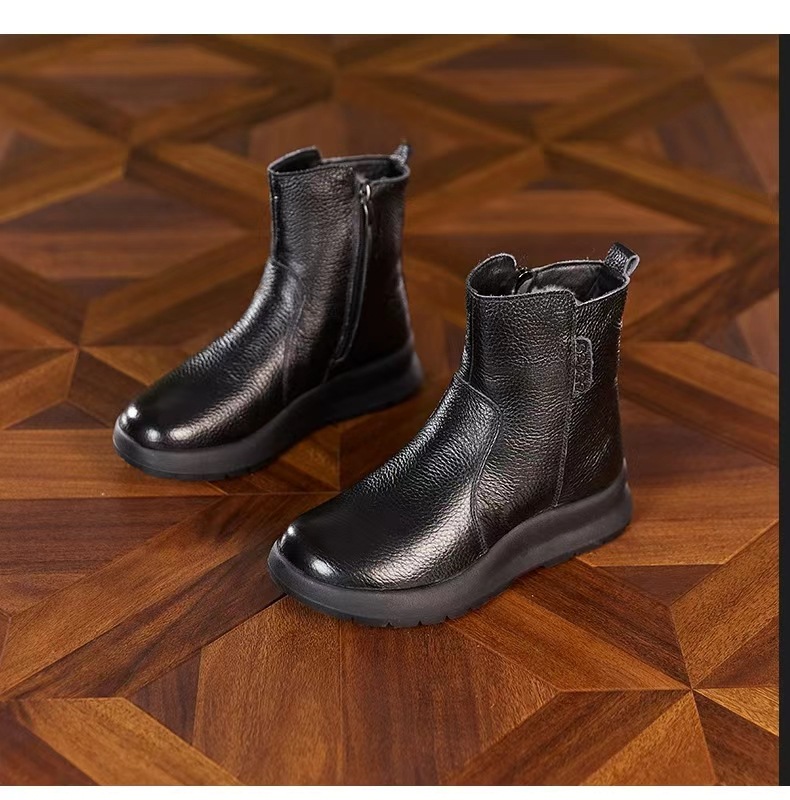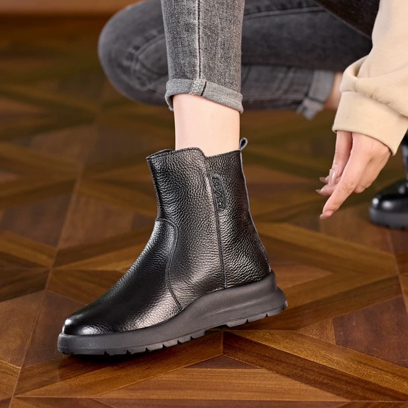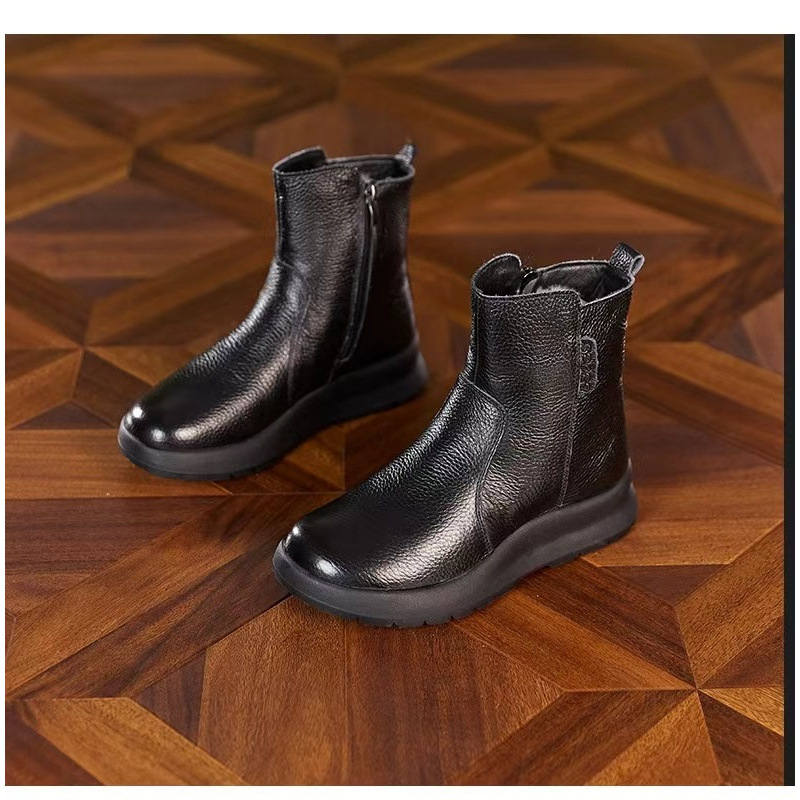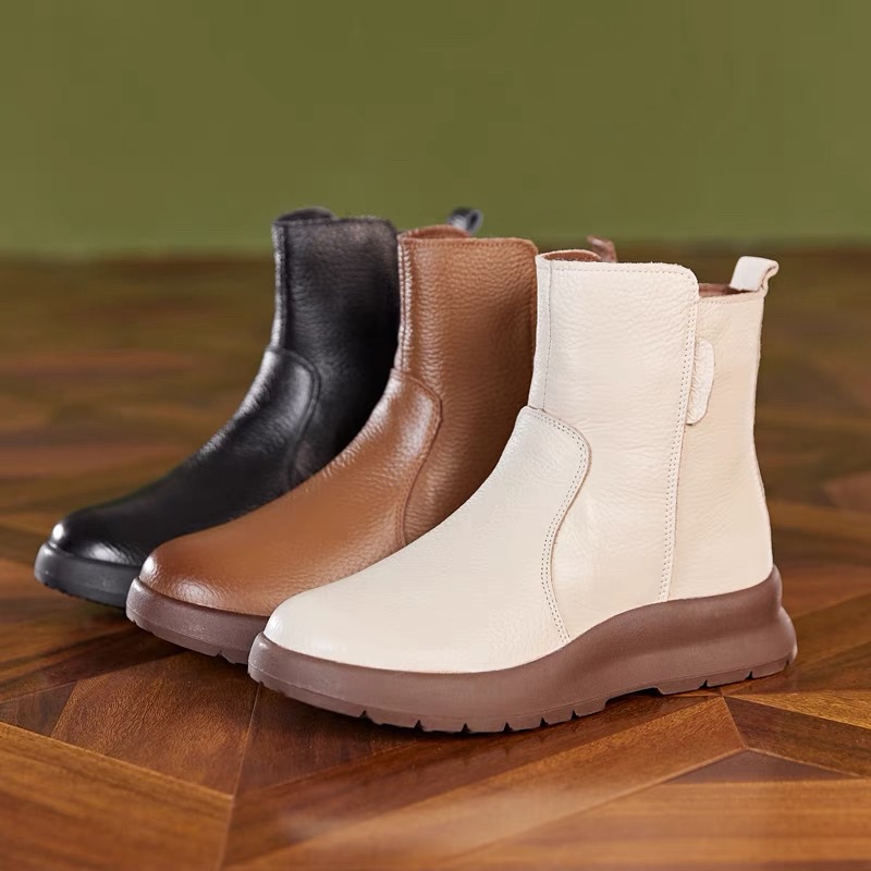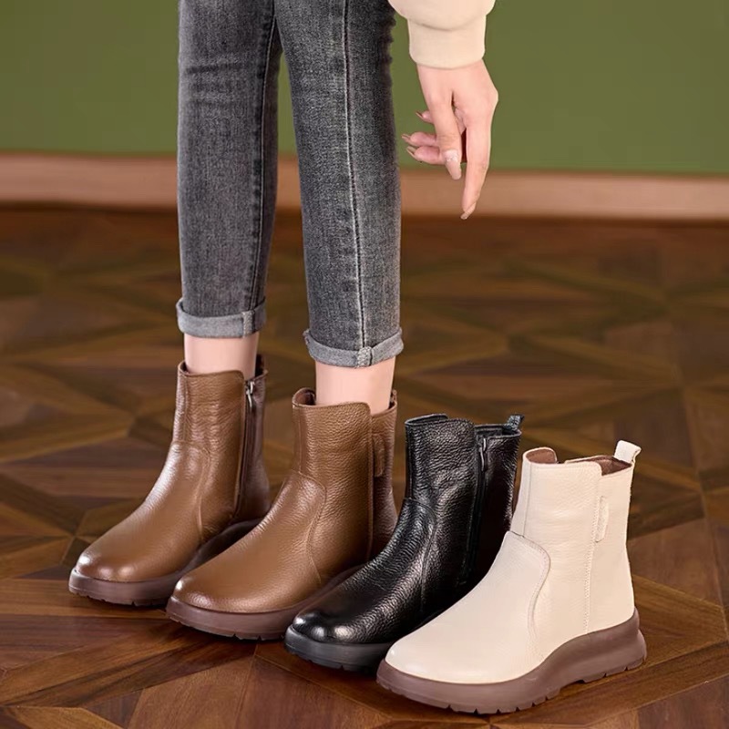 국경 1 층 소 가죽 가을과 겨울 새로운 마틴 부츠 여성의 두꺼운 밑창 증가 된 양모 여성용 가죽 부츠 기모 두껍게 캐주얼스토어 가기