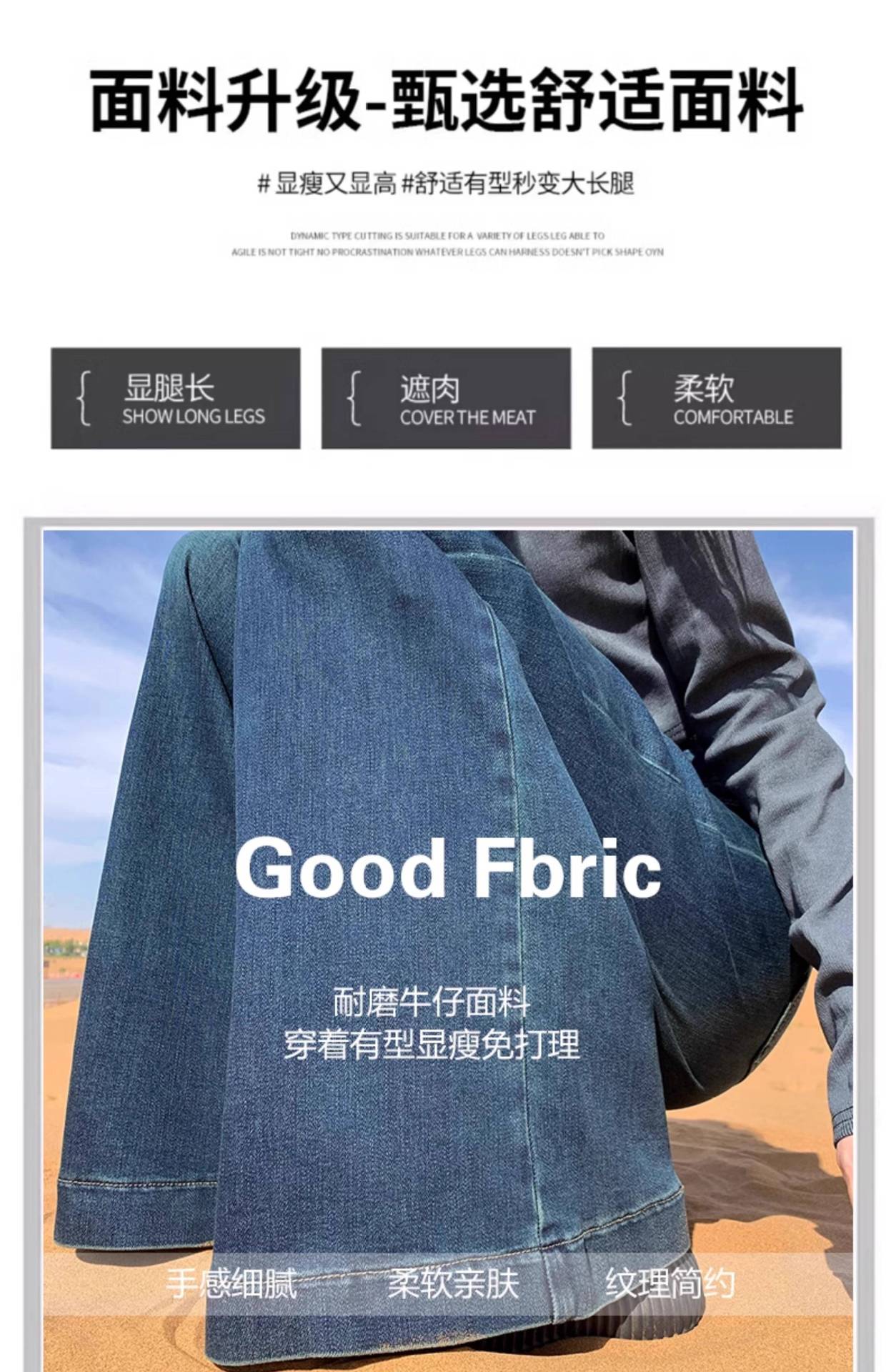 검은 넓은 다리 청바지 여성의 봄과 가을 새로운 높은 허리 느슨한 다리 없음 바지 가을과 겨울 기모