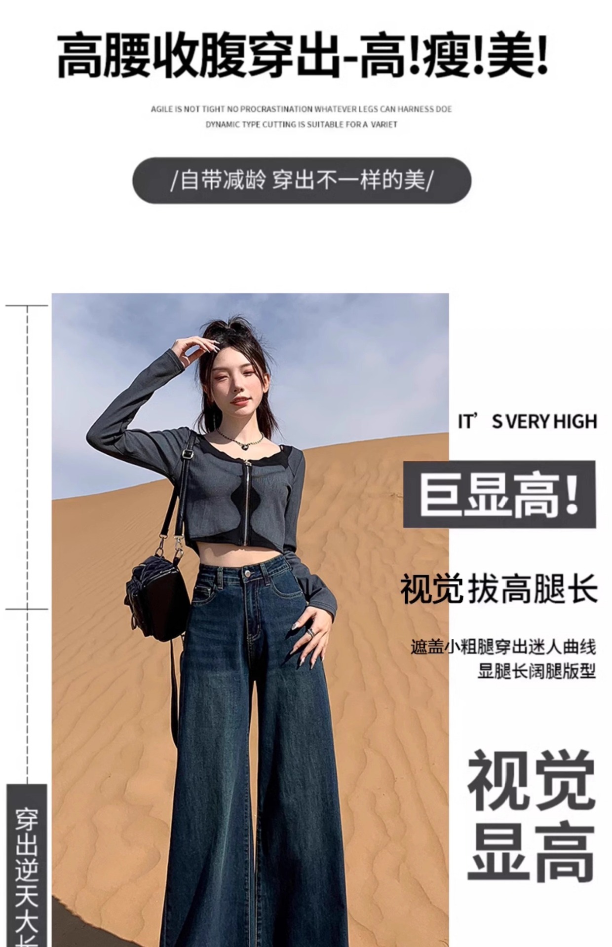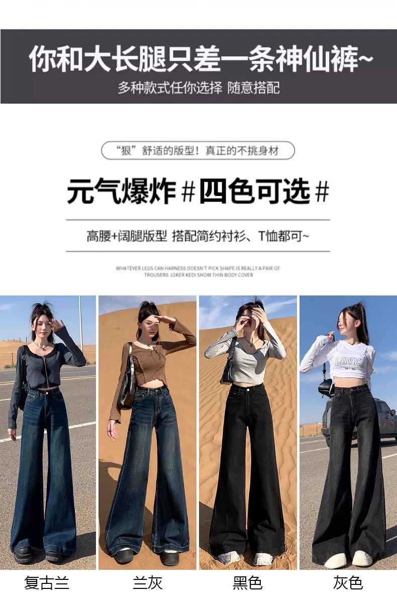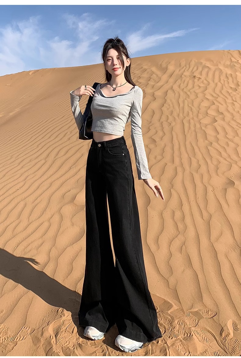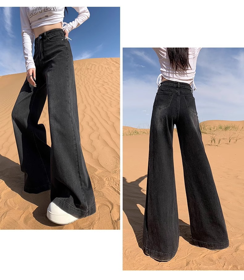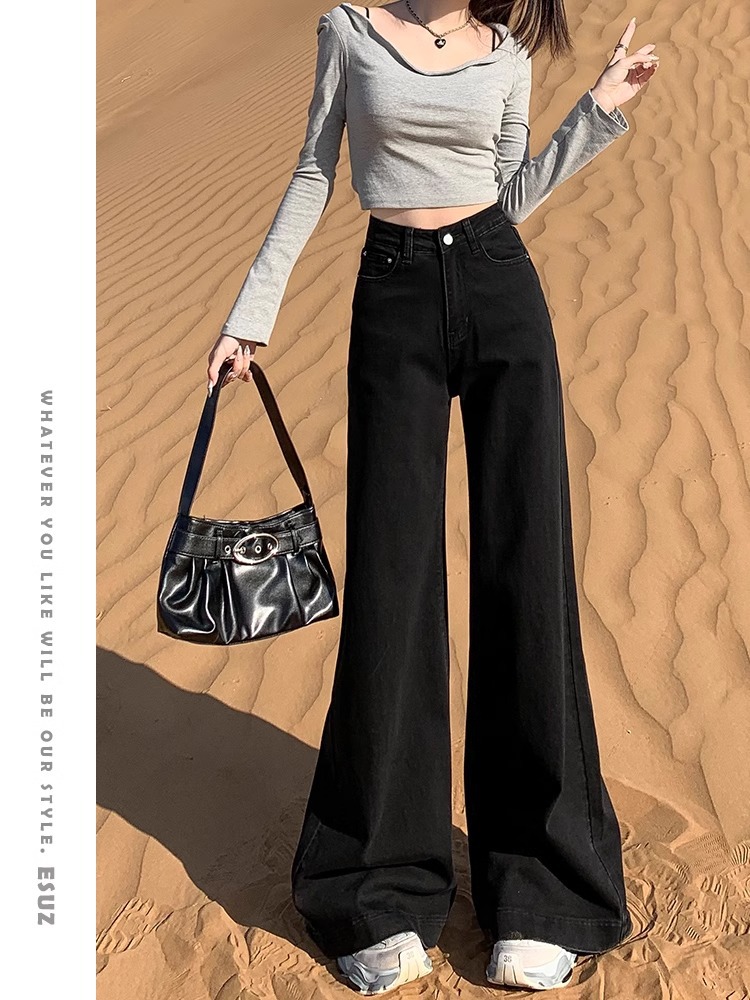 검은 넓은 다리 청바지 여성의 봄과 가을 새로운 높은 허리 느슨한 다리 없음 바지 가을과 겨울 기모스토어 가기