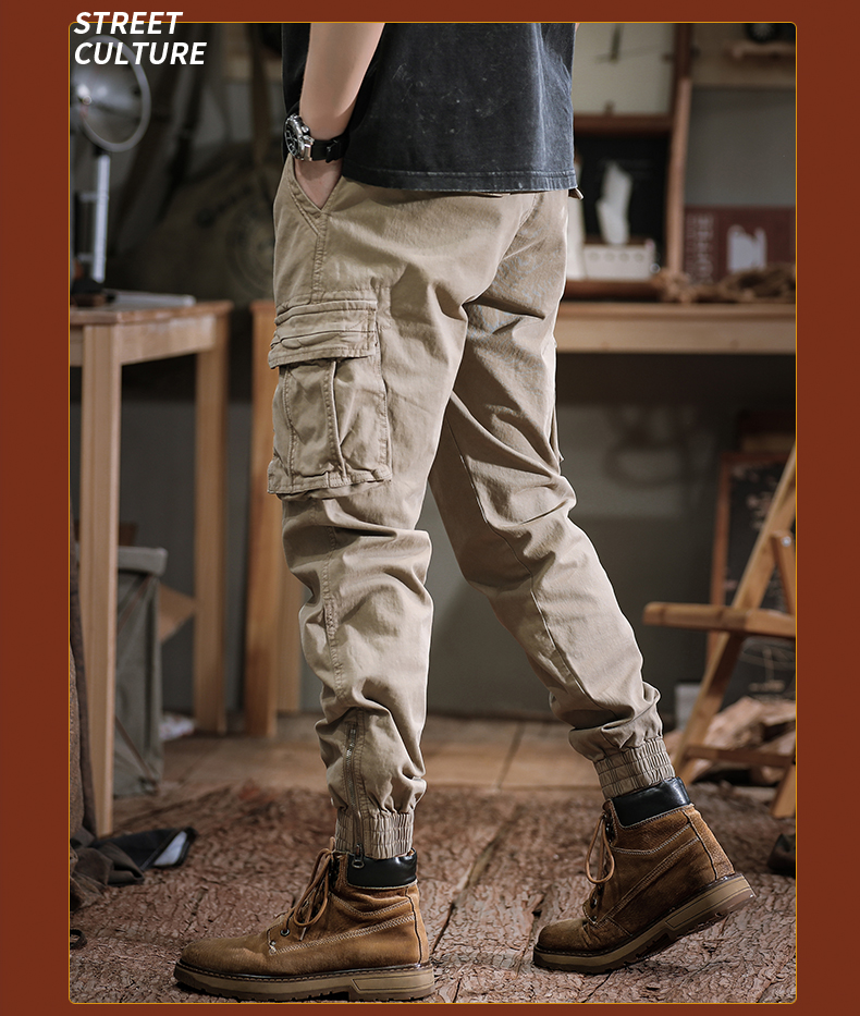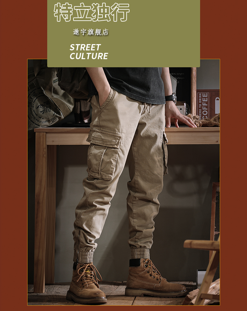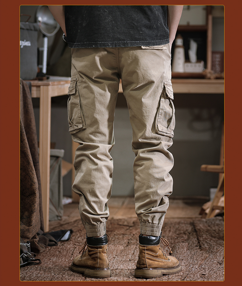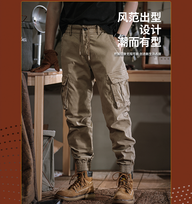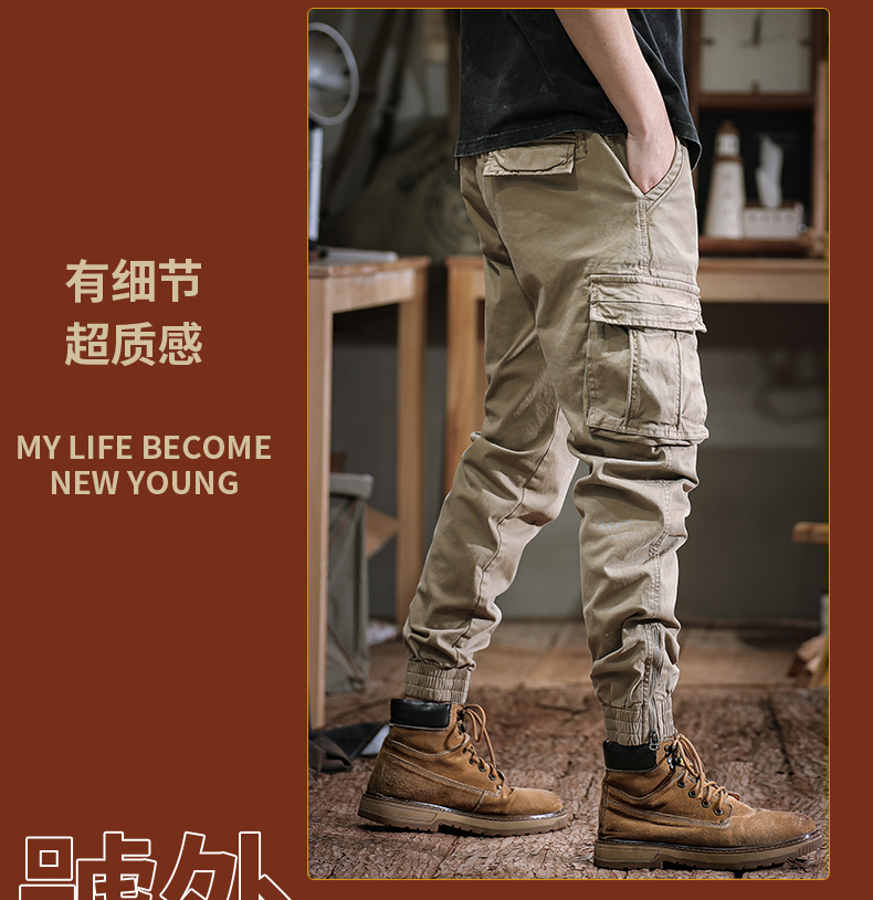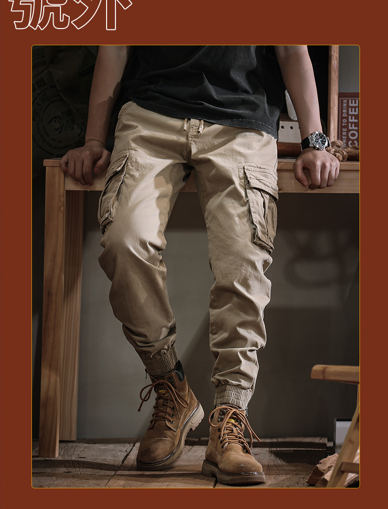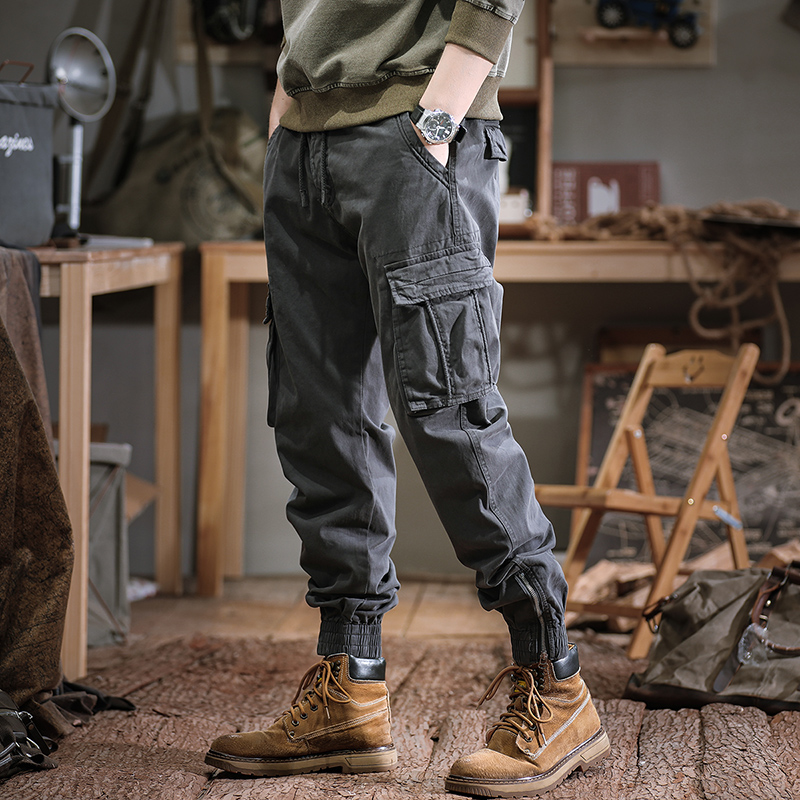 Ami Kaji 레트로 세탁 패션 브랜드 남성 크라우드 워크 바지 가을 야외 기능성 슬림 핏 레그 스포츠 캐주얼 바지