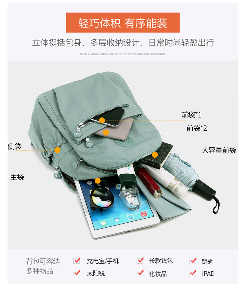 새로운 학생 스쿨백 대용량 여성용 배낭 경량 발수성 나일론 헝겊 가방 캐주얼 야외 여행 가방