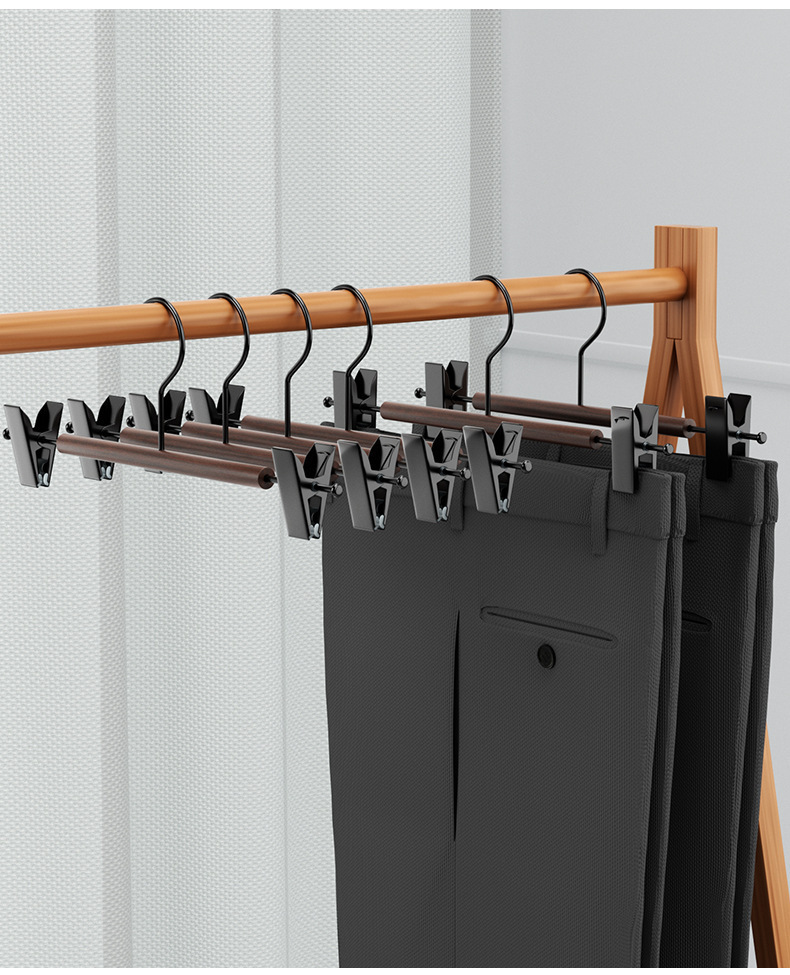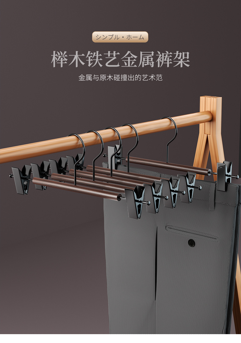 하이 엔드 레트로 아이언 라이트 럭셔리 팬츠 랙 금속 솔리드 우드 팬츠 매달려 다기능 스트레치 가능한 원활한 바지 스커트 클립 팬츠 랙