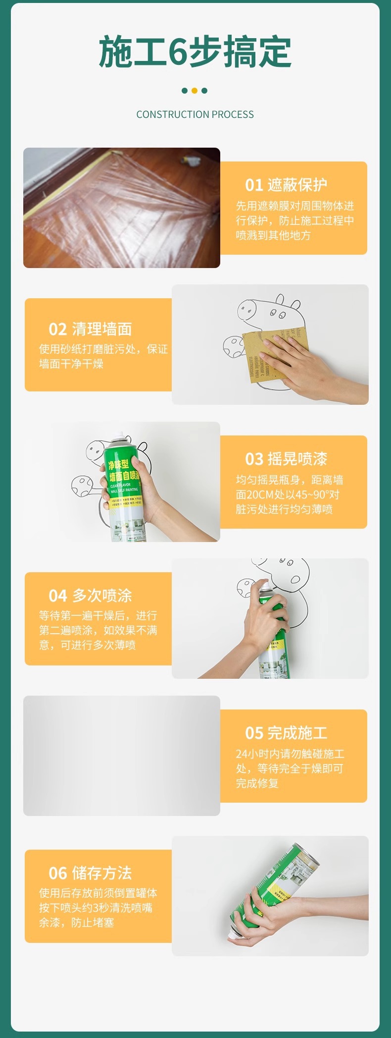 • 셀프 스프레이 페인팅 1600ml(무료 브러시 + 장갑 + 사포) 매우 비용 효율적, 일반