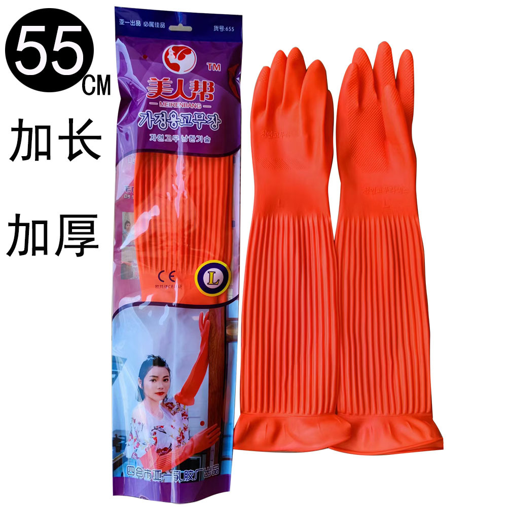 아름다움 도움 55cm 라텍스 장갑이 두껍게 길어진 세차 청소 장갑 빨간 긴 고무 장갑 도매