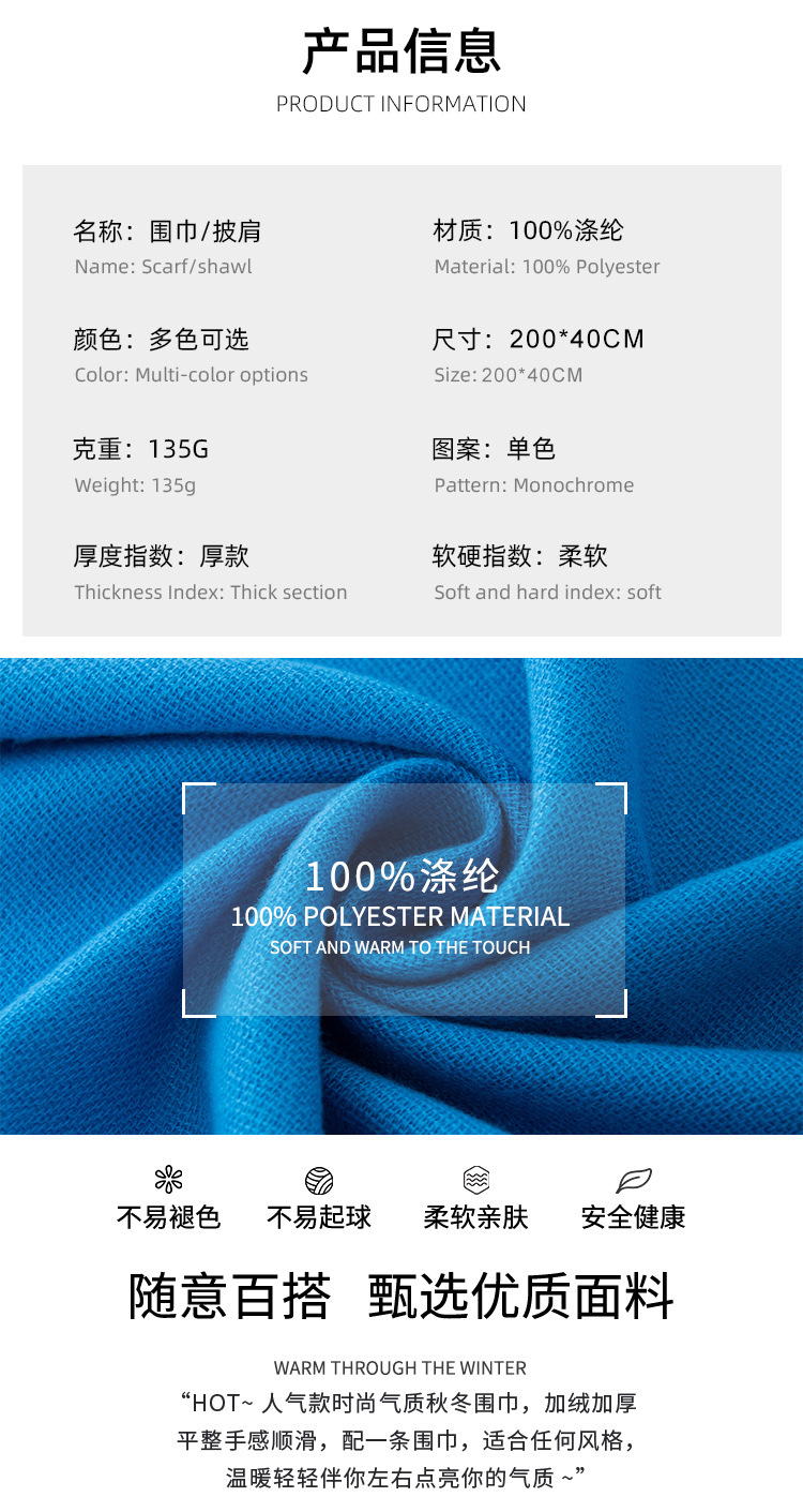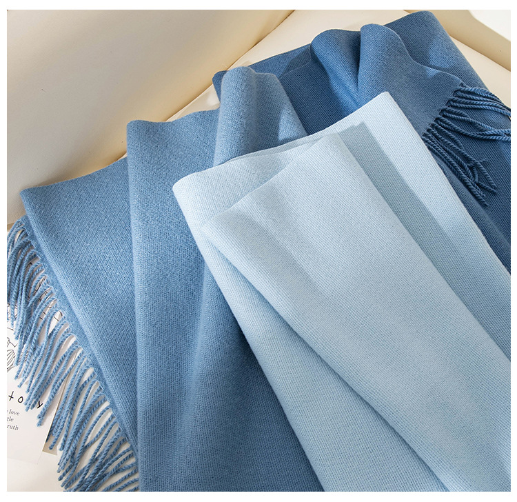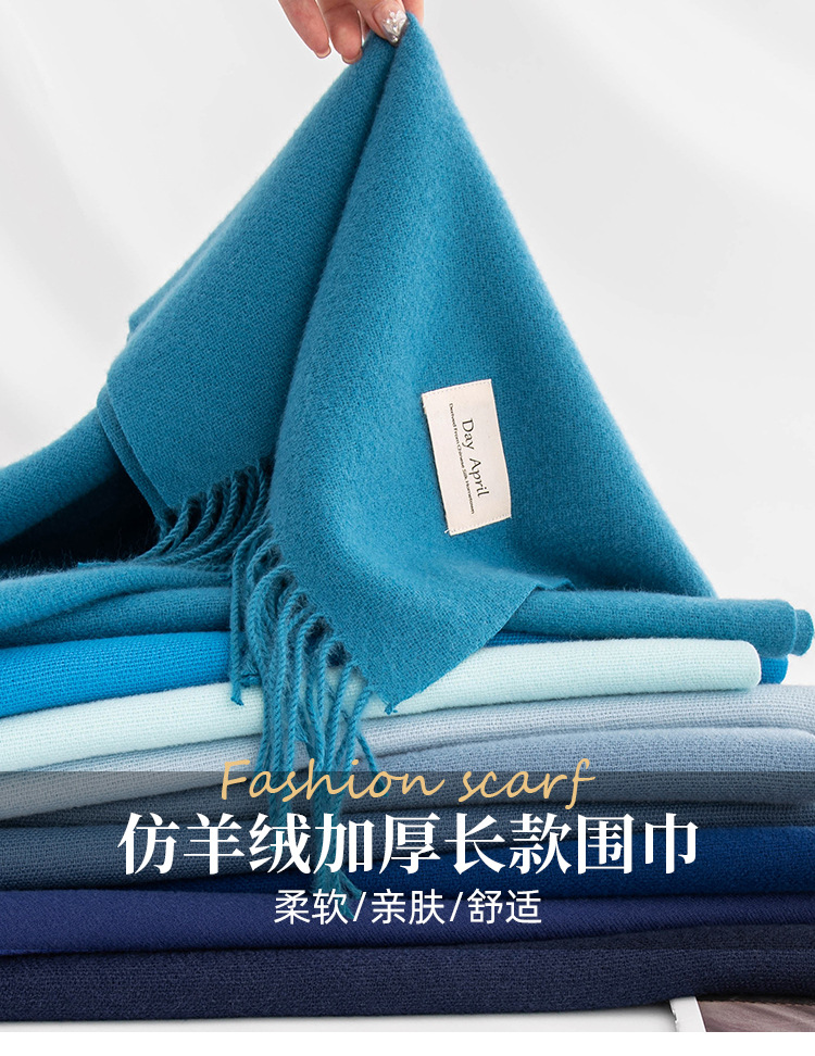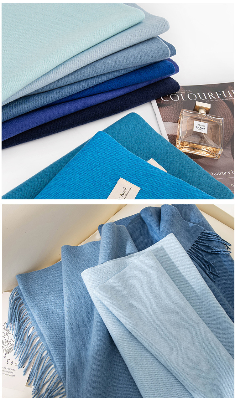 캐시미어 느낌의 블루 스카프 여성용 한국 스타일 분위기 있는 겨울 보온 가을 겨울 다용도 고급스러운 숄 여성 도매스토어 가기