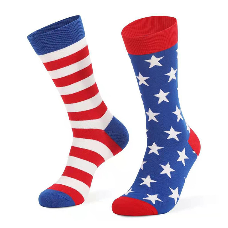 국경 간 아마존 순면 미국 독립 기념일 깃발 양말 컬러 블록 줄무늬 중형 양말 남성 웨딩 양말