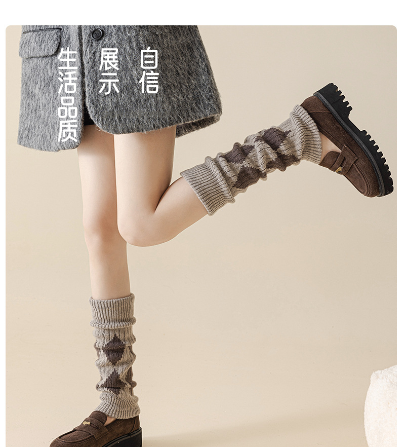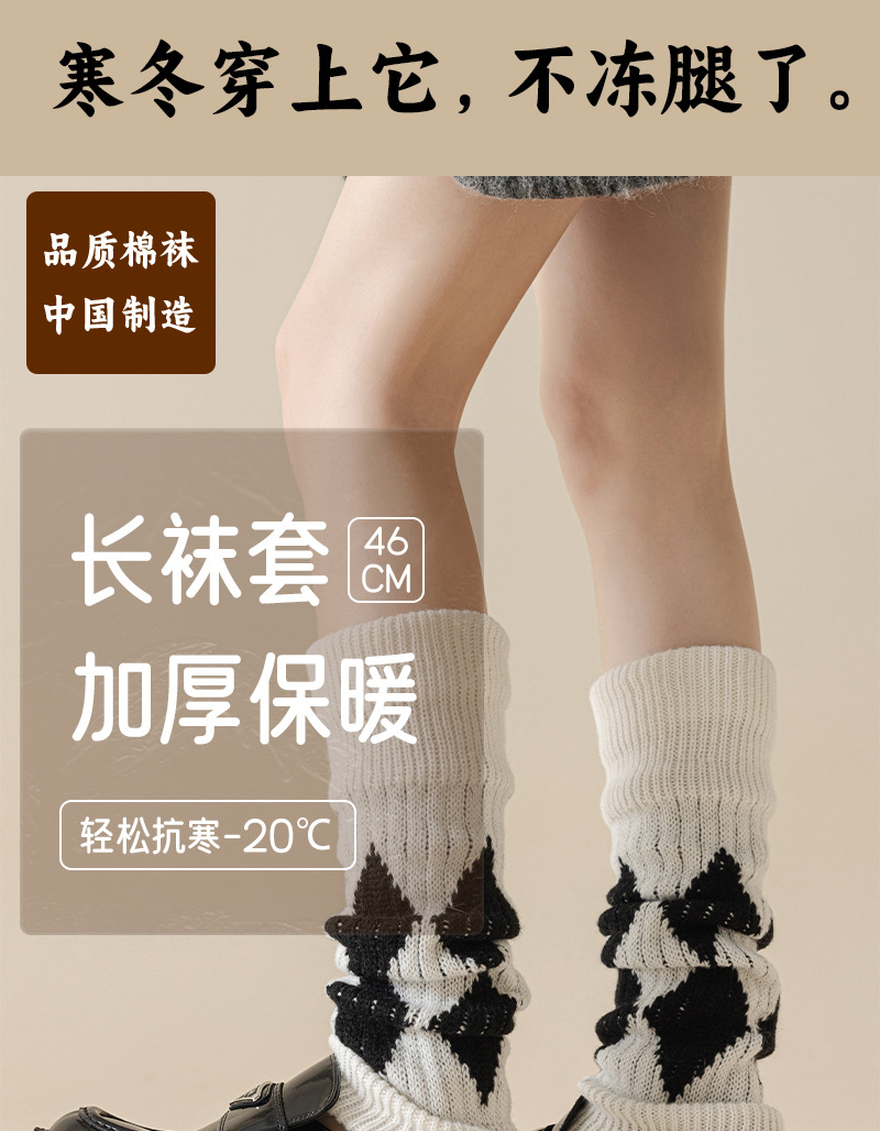 빈티지 니트 다이아몬드 격자 무늬 회색 양말 여성의 가을과 겨울 두꺼운 양모 따뜻한 다리 커버 두꺼운 니트 스택 양말