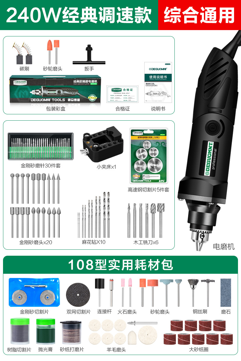 • [240W/6단 속도 조절/0.6-6.5 클램핑] 럭셔리 하이 구성 + 무료 108 액세서리