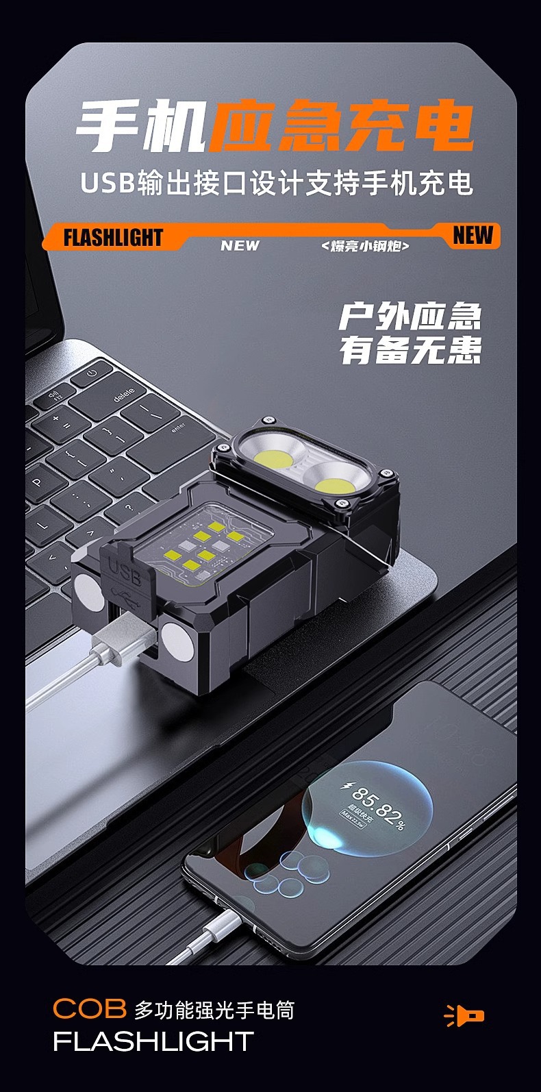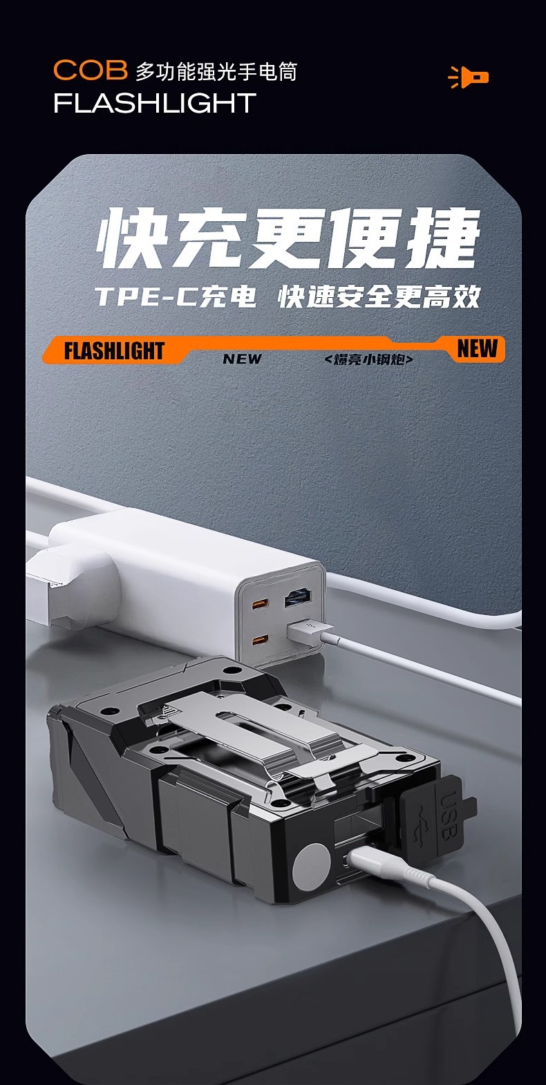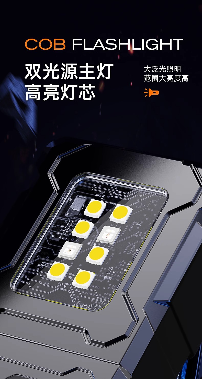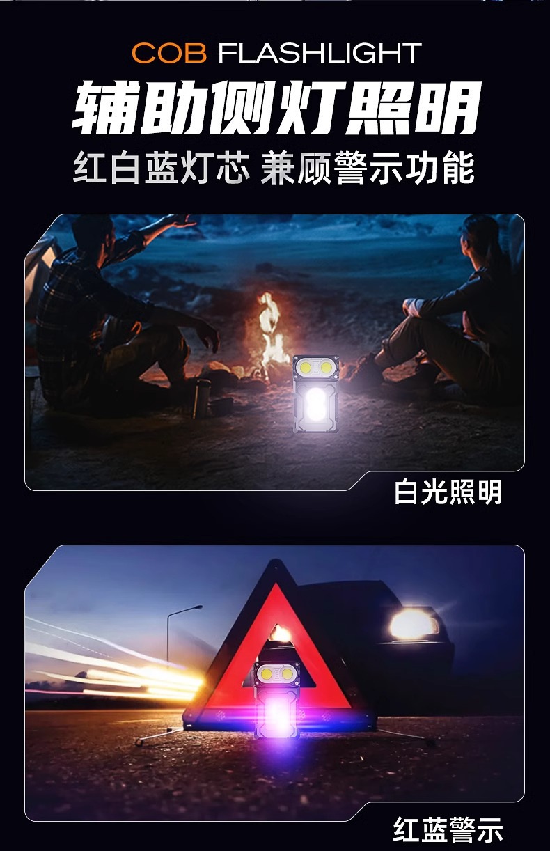 • [표준 버전] 빨간색과 파란색 플래시 12h + 다기능 측면 조명 + 이중 자기 흡입