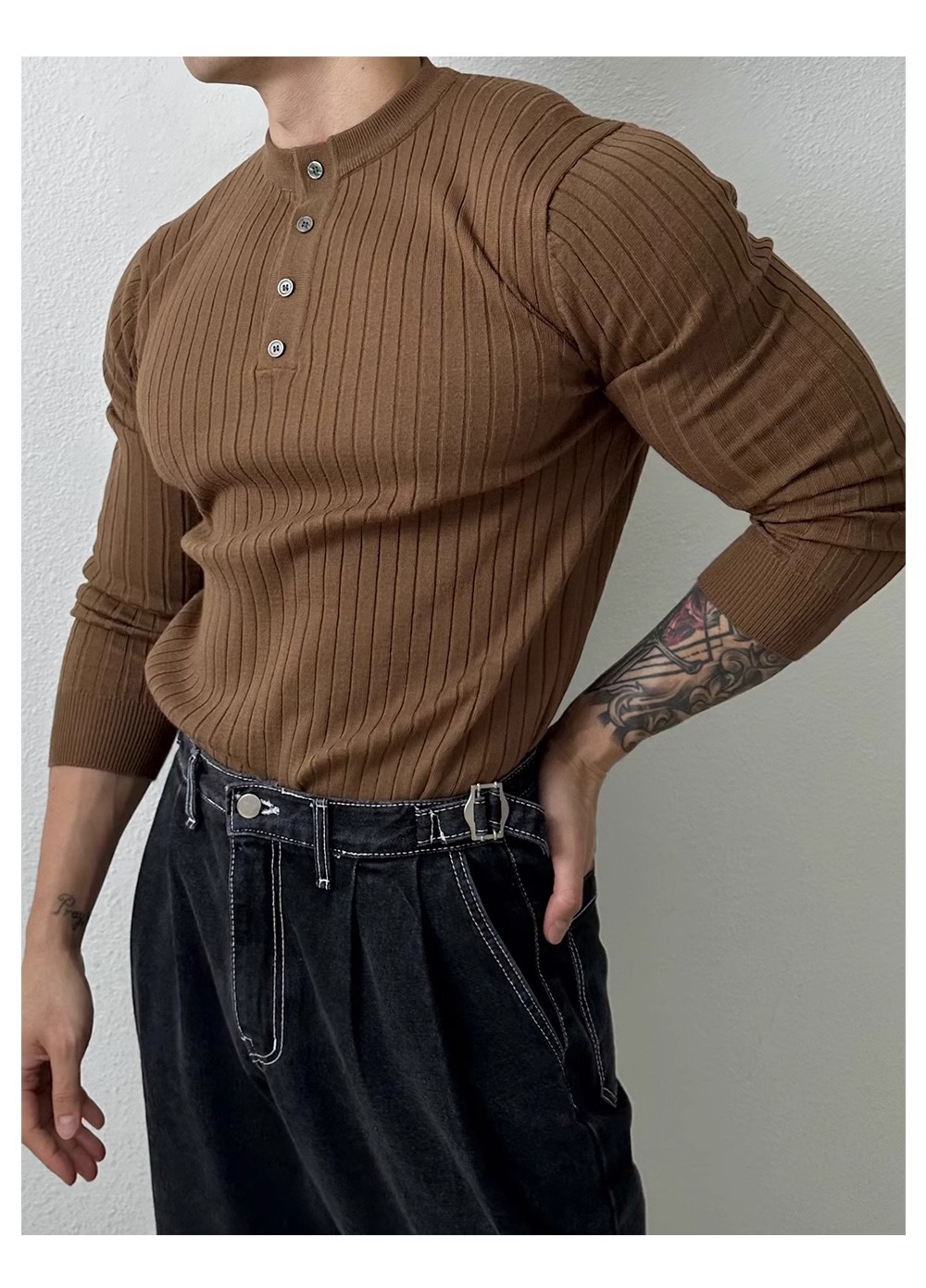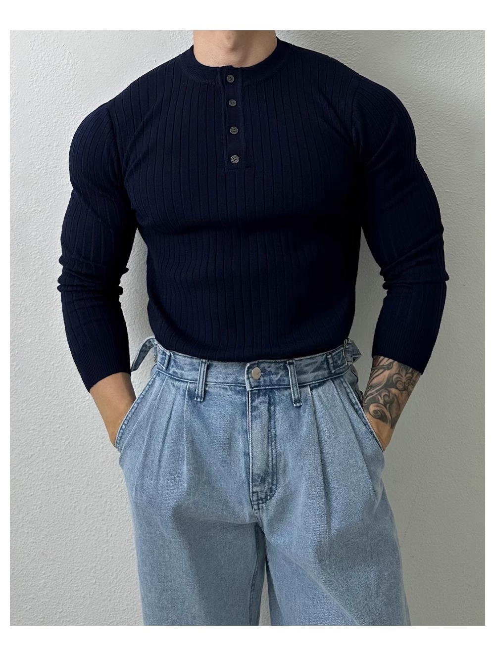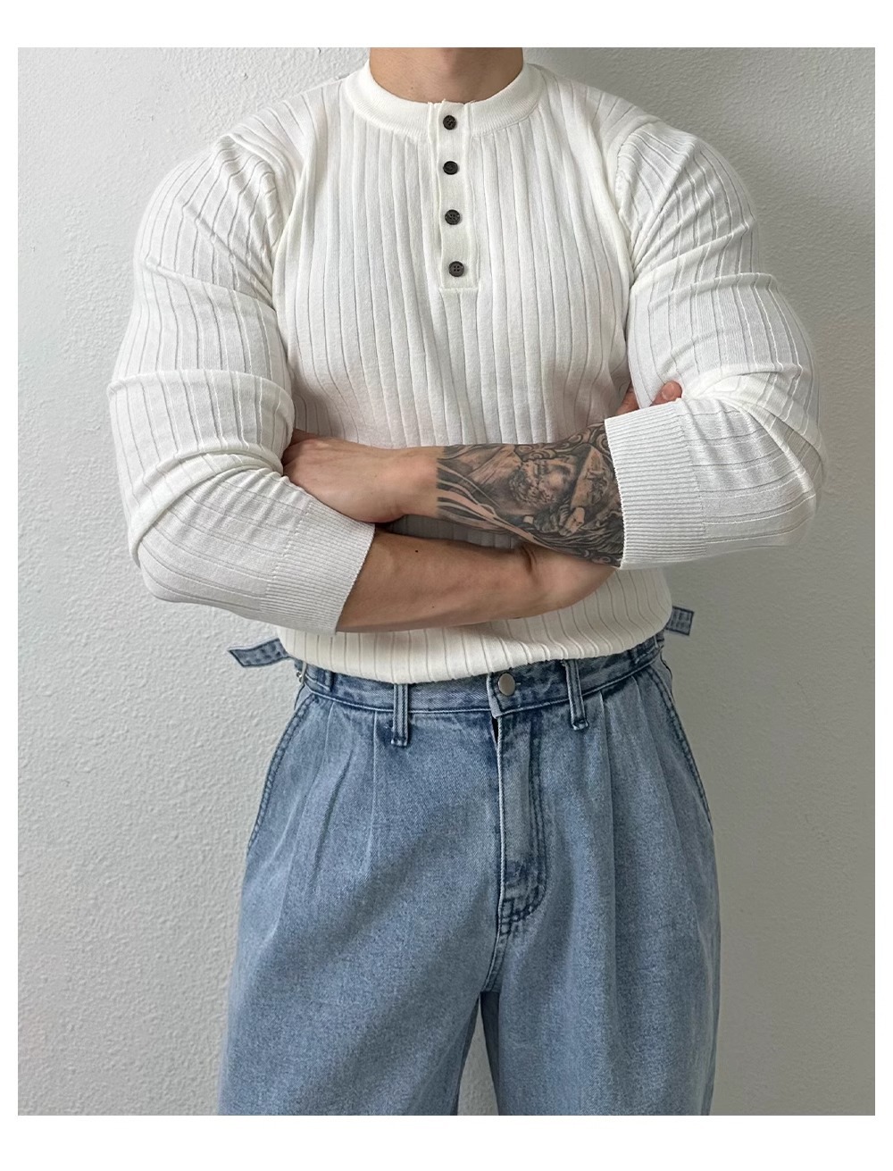 헨리 칼라 긴팔 스웨터 남자 봄 새로운 미국 스타일 근육 남자 피트니스 올 매치 슬림 핏 티셔츠