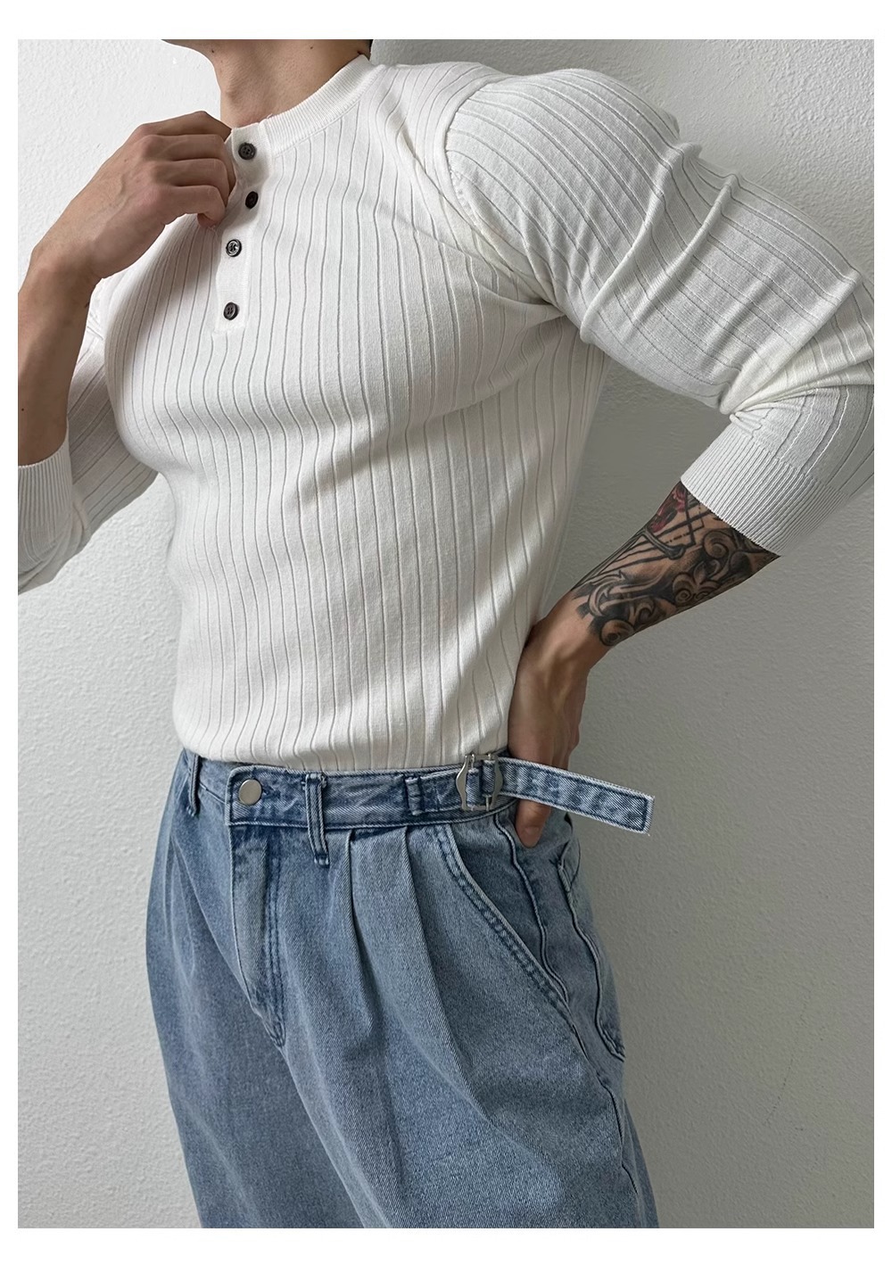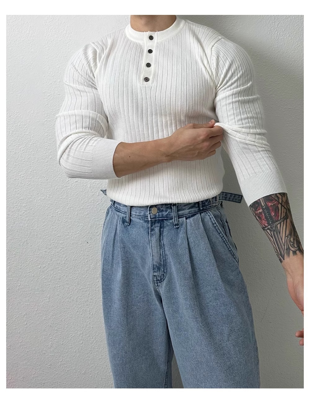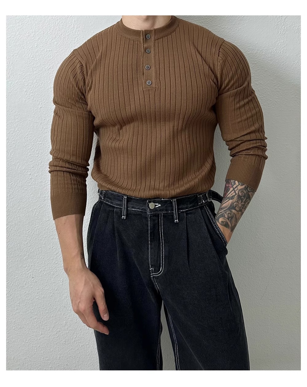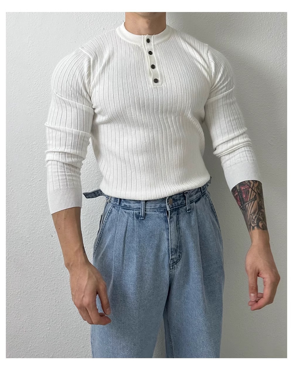 헨리 칼라 긴팔 스웨터 남자 봄 새로운 미국 스타일 근육 남자 피트니스 올 매치 슬림 핏 티셔츠