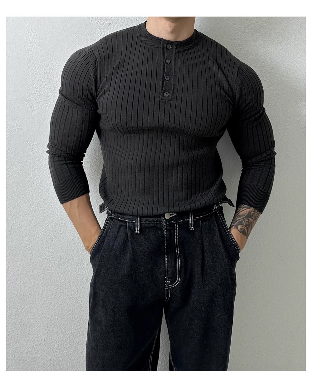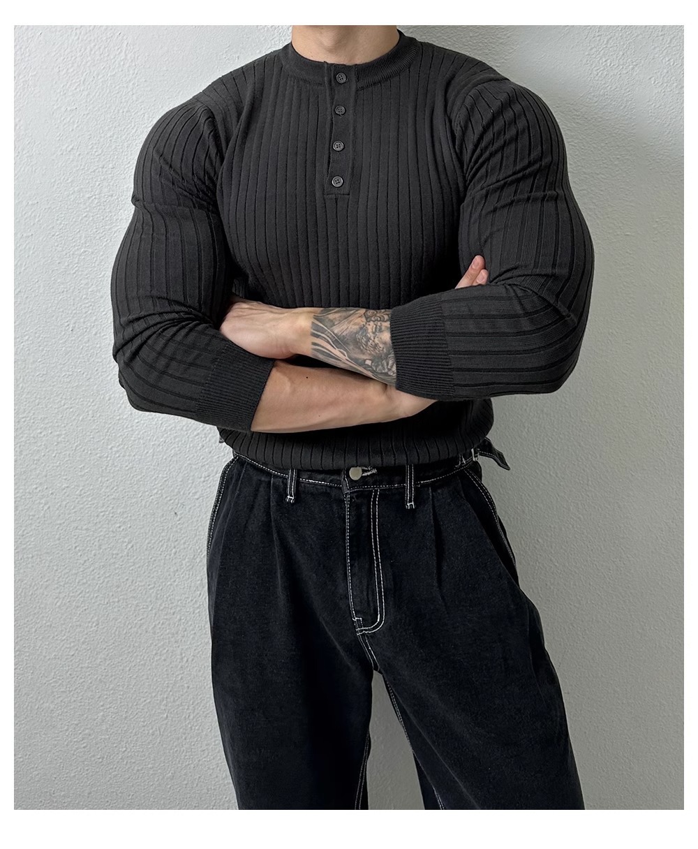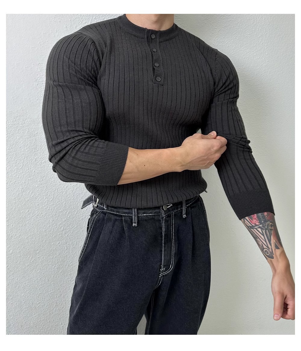헨리 칼라 긴팔 스웨터 남자 봄 새로운 미국 스타일 근육 남자 피트니스 올 매치 슬림 핏 티셔츠스토어 가기