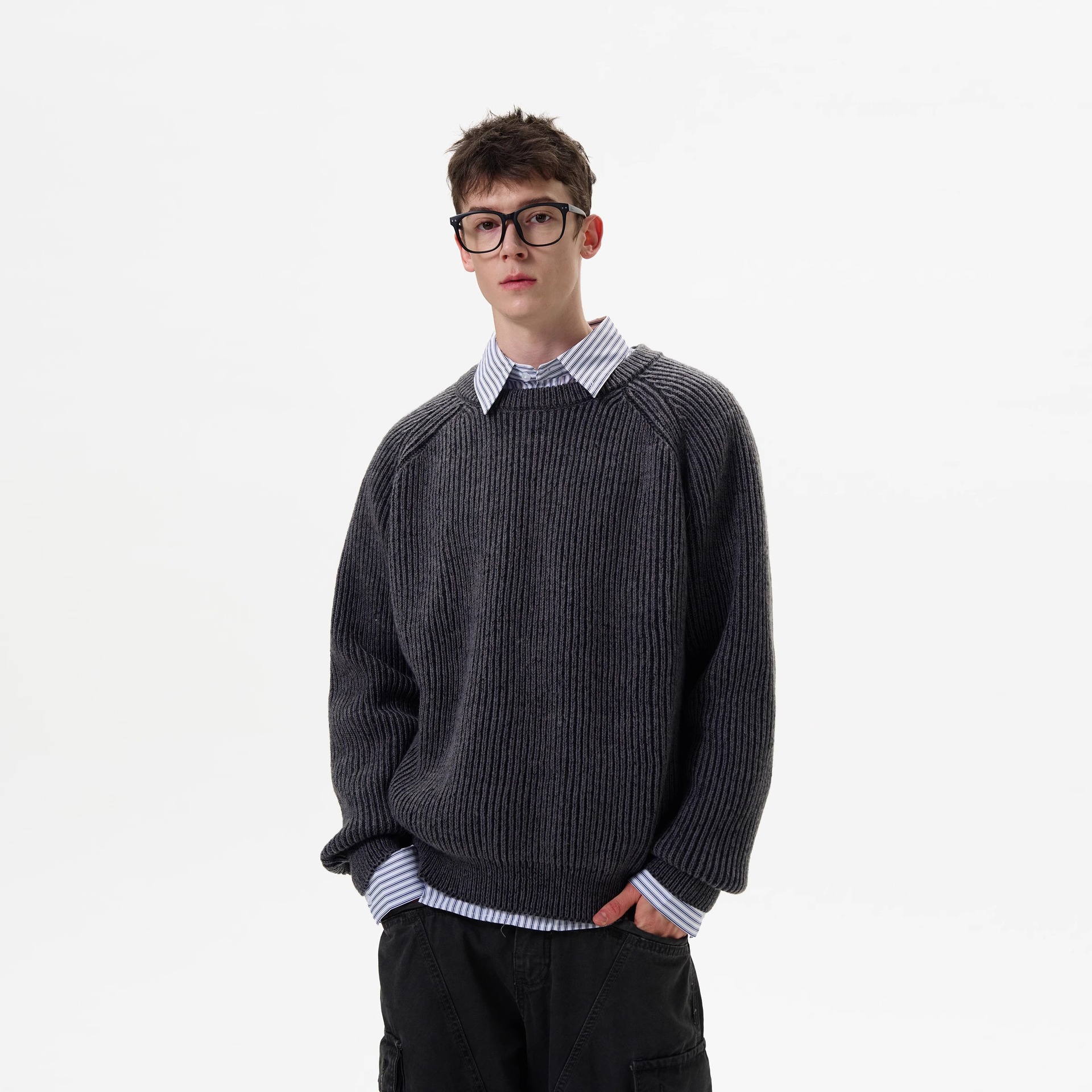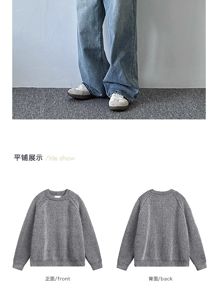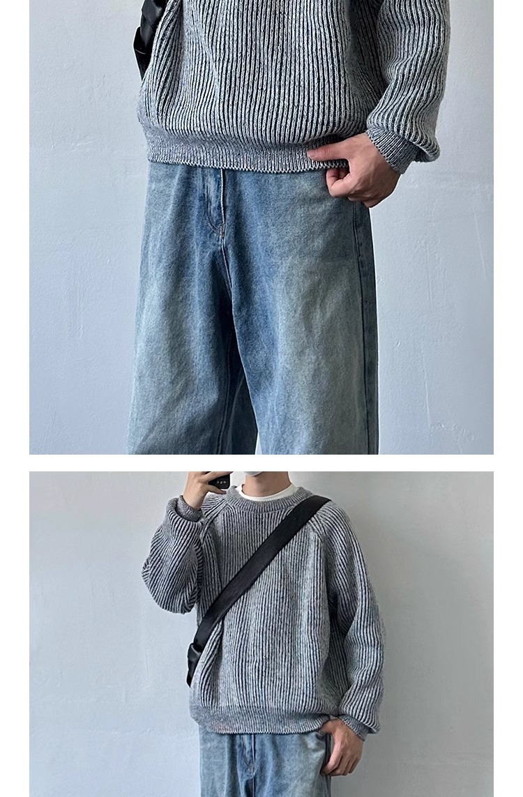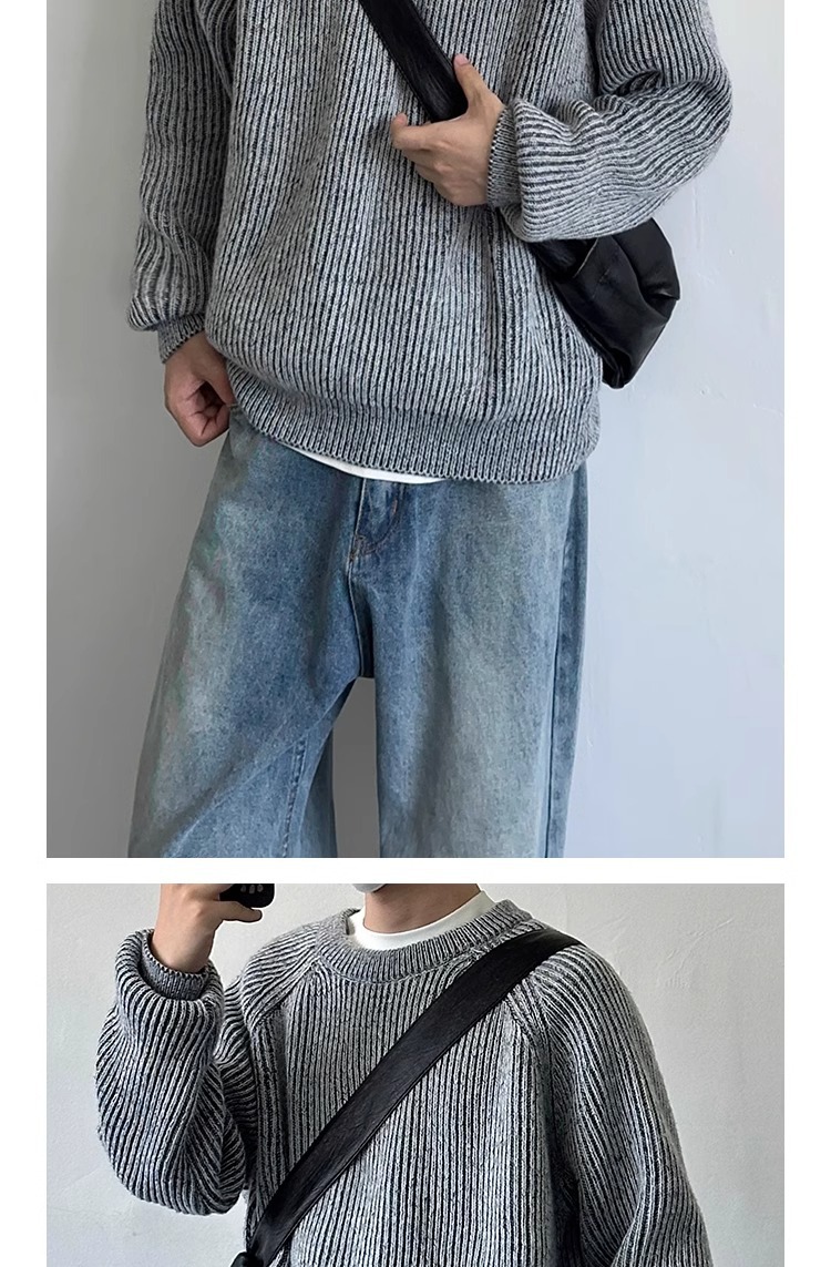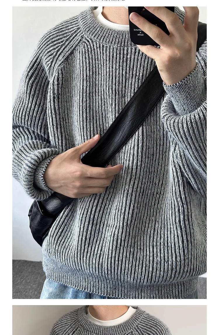 纯色基础圆领竖纹毛衣男2024春秋季新款宽松潮流休闲套头针织上衣