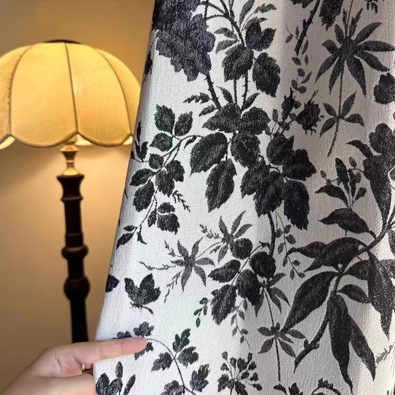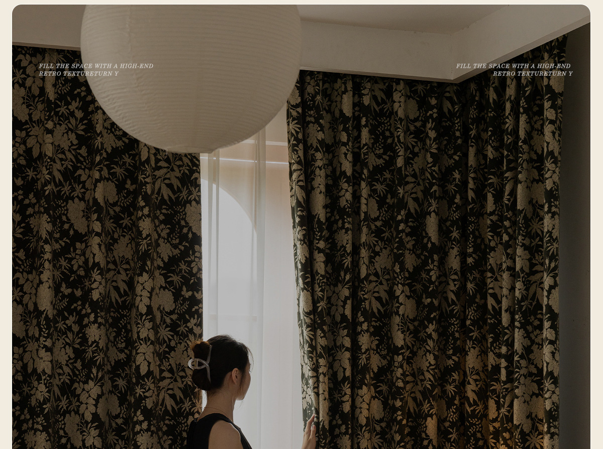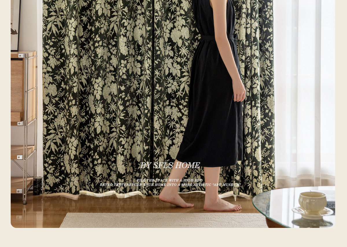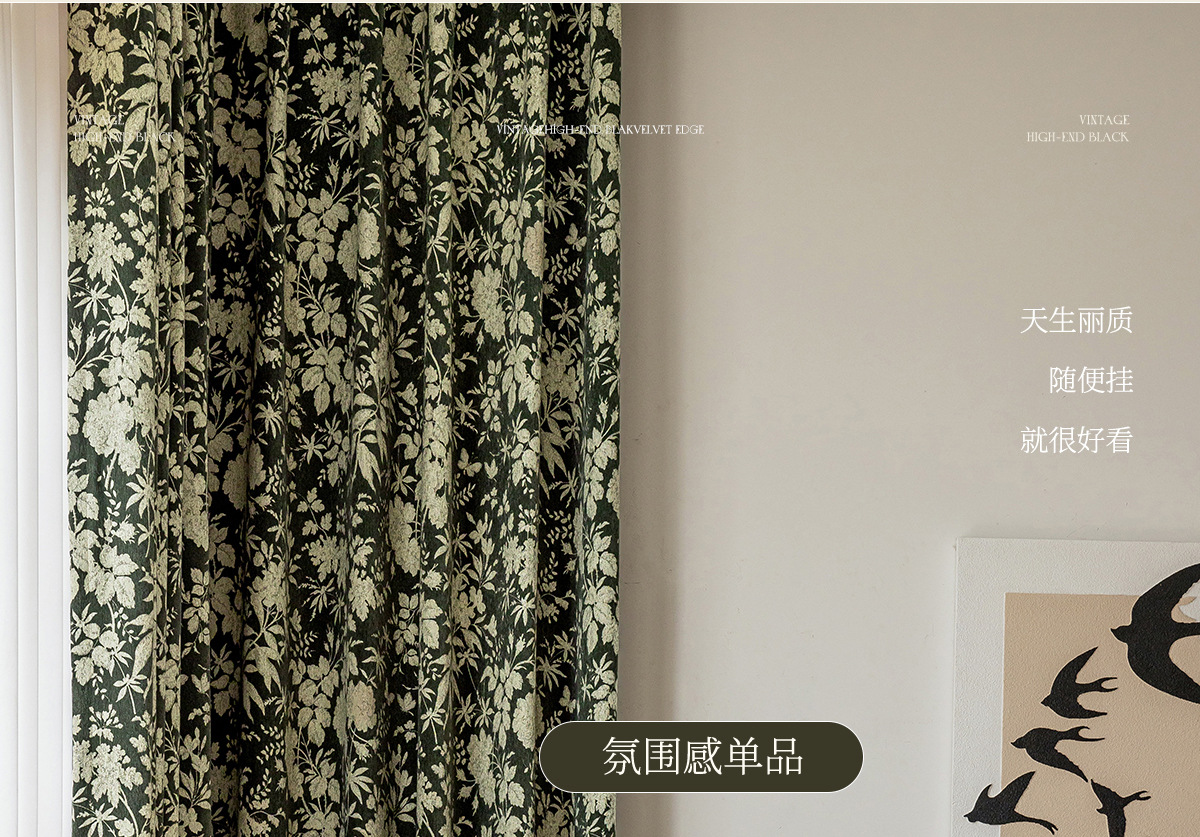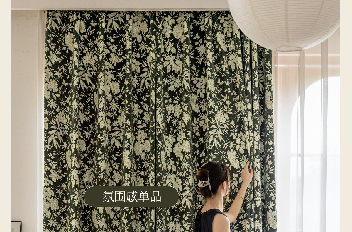새로운 미국 스타일 빈티지 그린 체닐 원사 염색 자카드 커튼 빛 고급 중년 거실 침실 소흥 완성 커튼스토어 가기