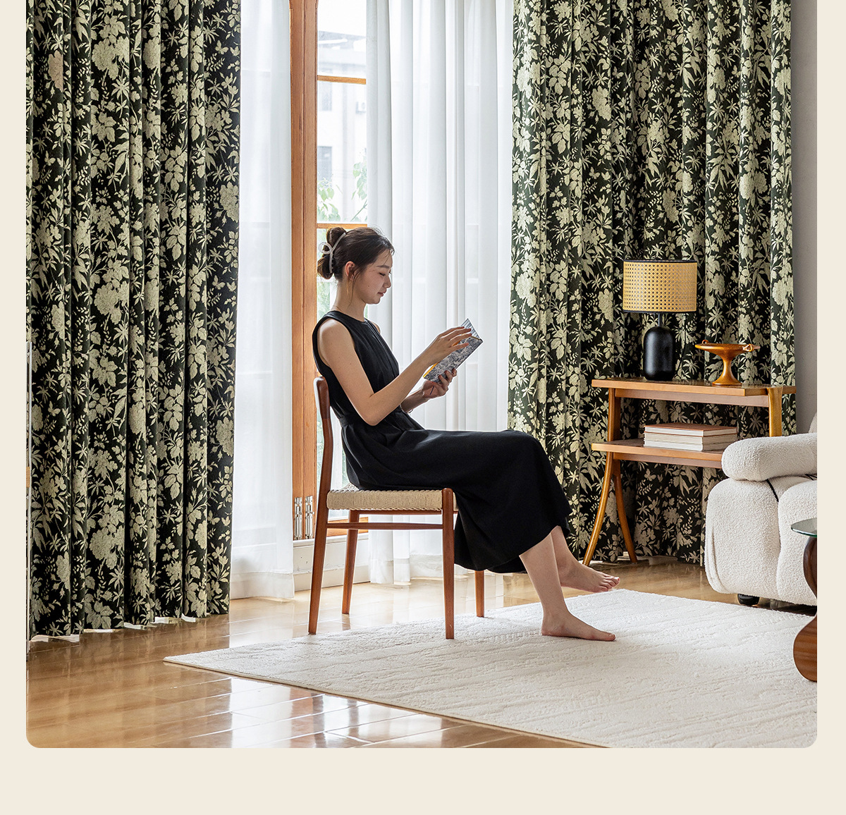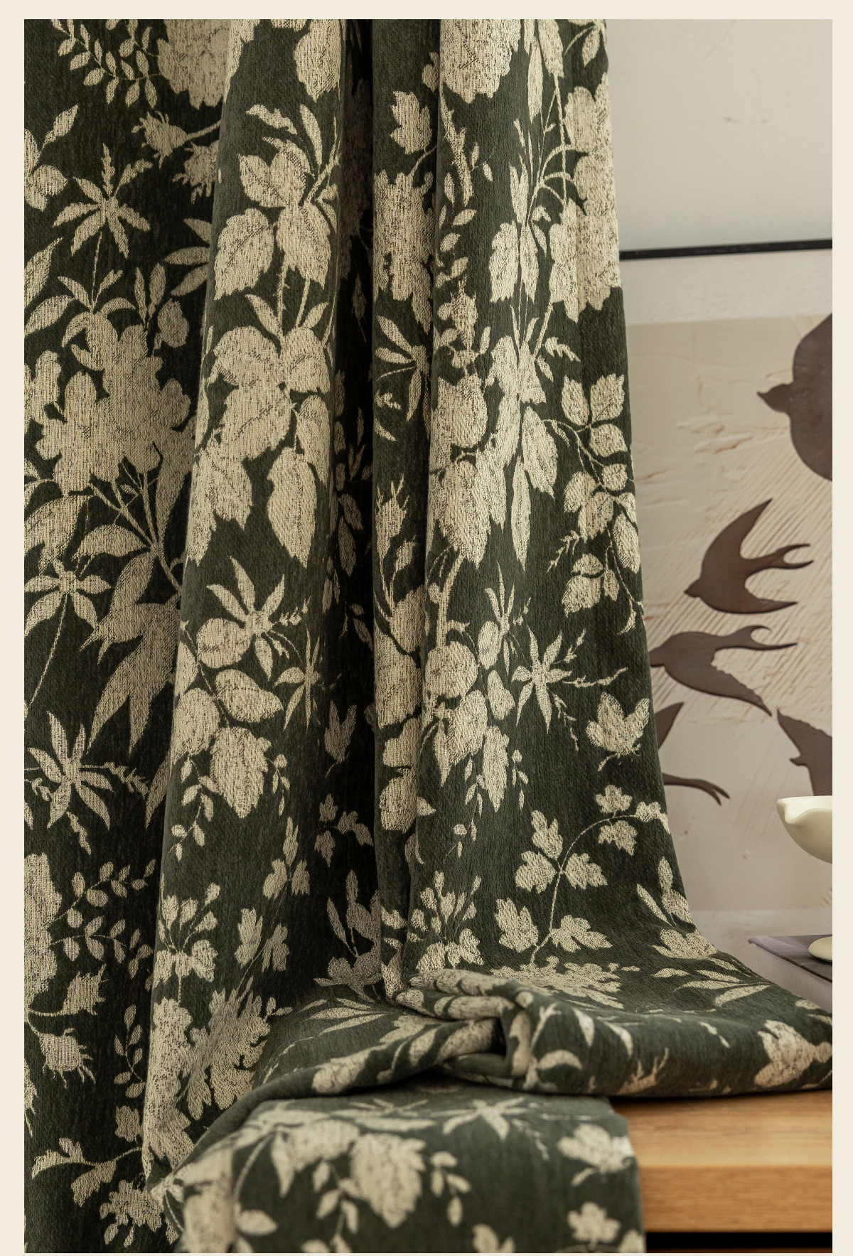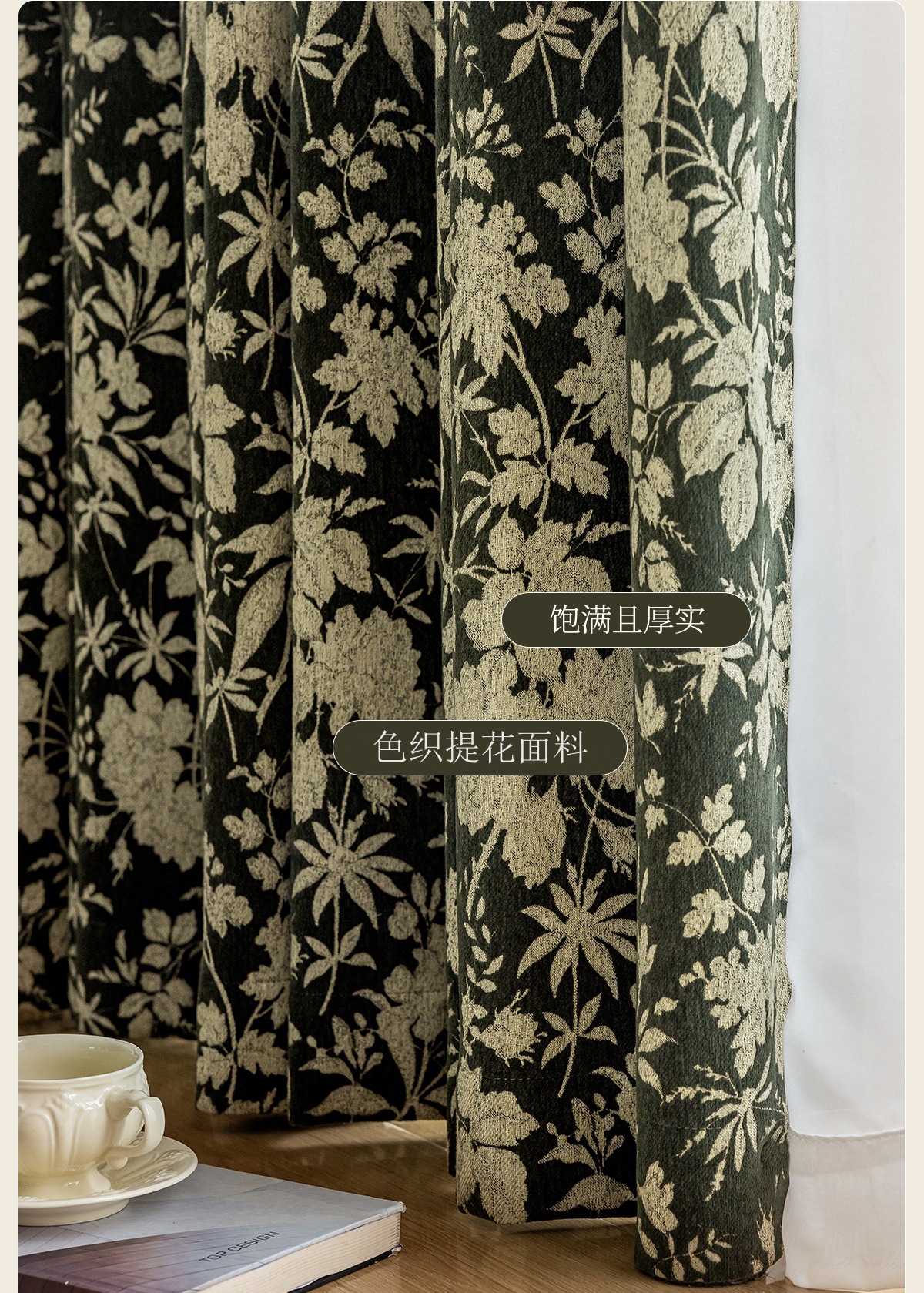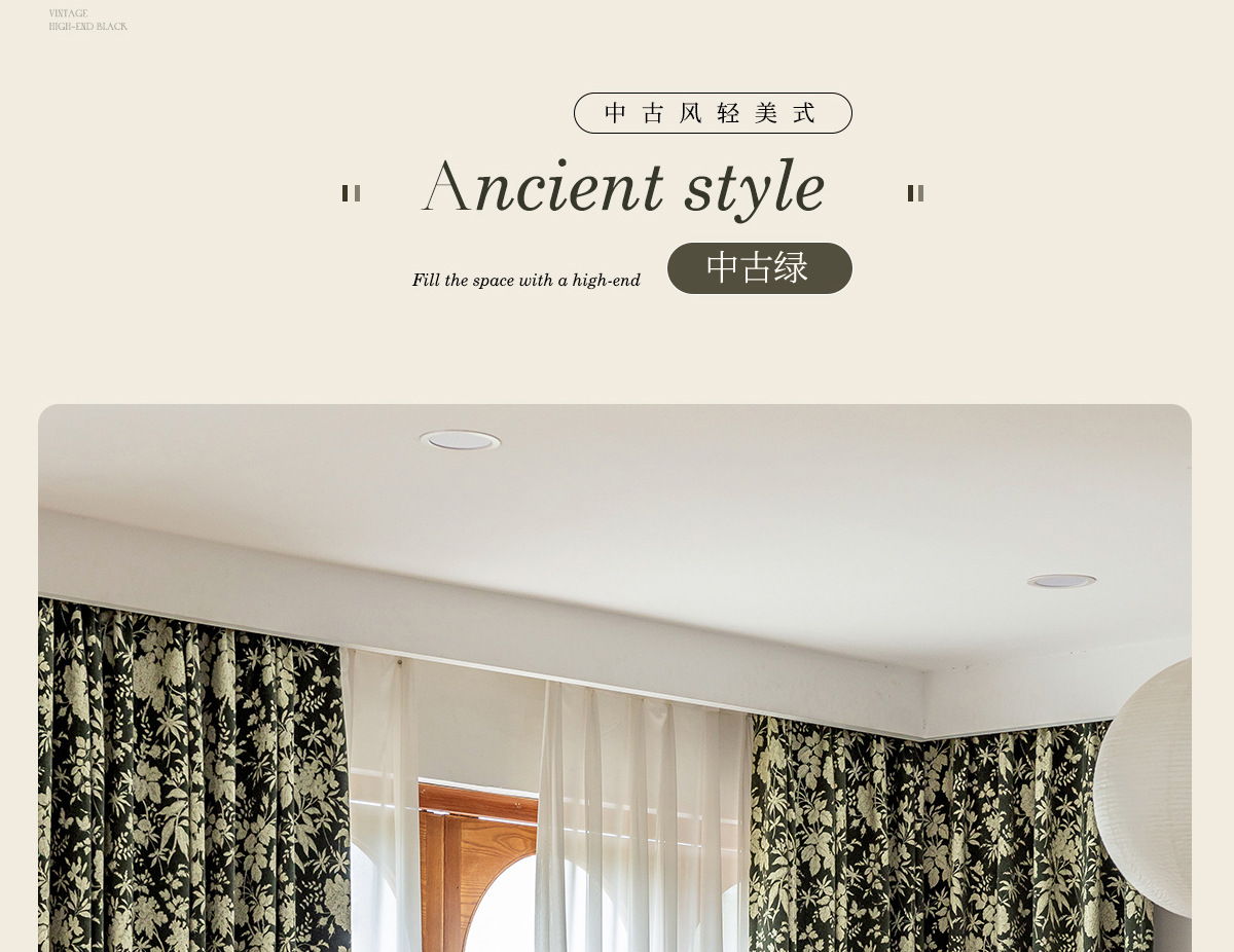 새로운 미국 스타일 빈티지 그린 체닐 원사 염색 자카드 커튼 빛 고급 중년 거실 침실 소흥 완성 커튼스토어 가기