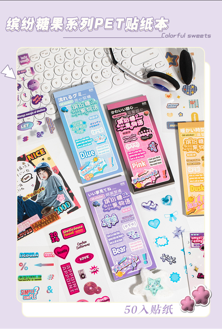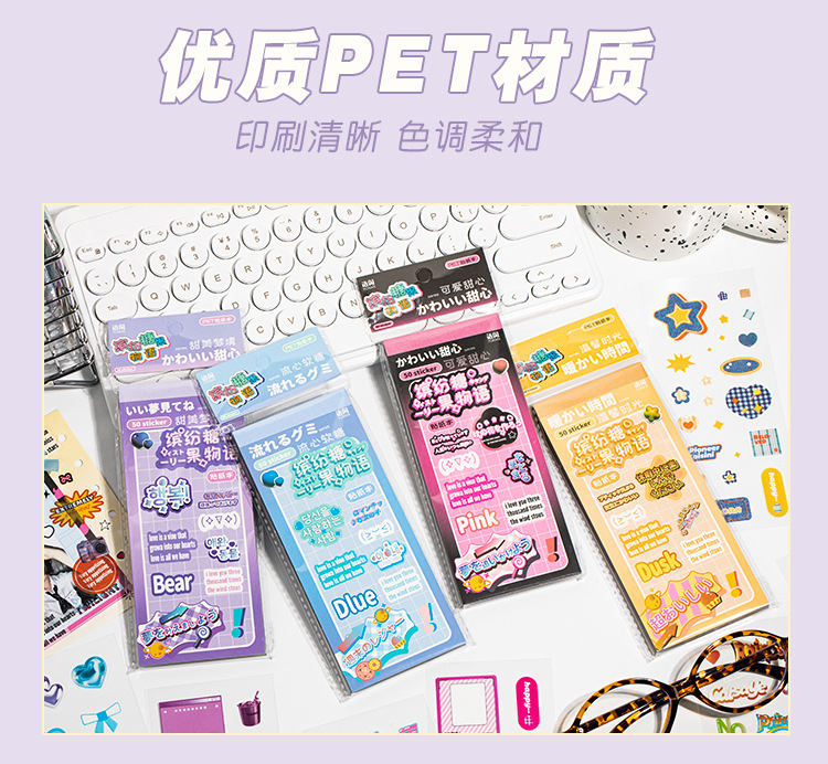 언어 무료 PET 컷 필름 스티커 이 화려한 캔디 시리즈 한국 방수 소재 손 계정 임의의 diy goo 카드 스티커스토어 가기