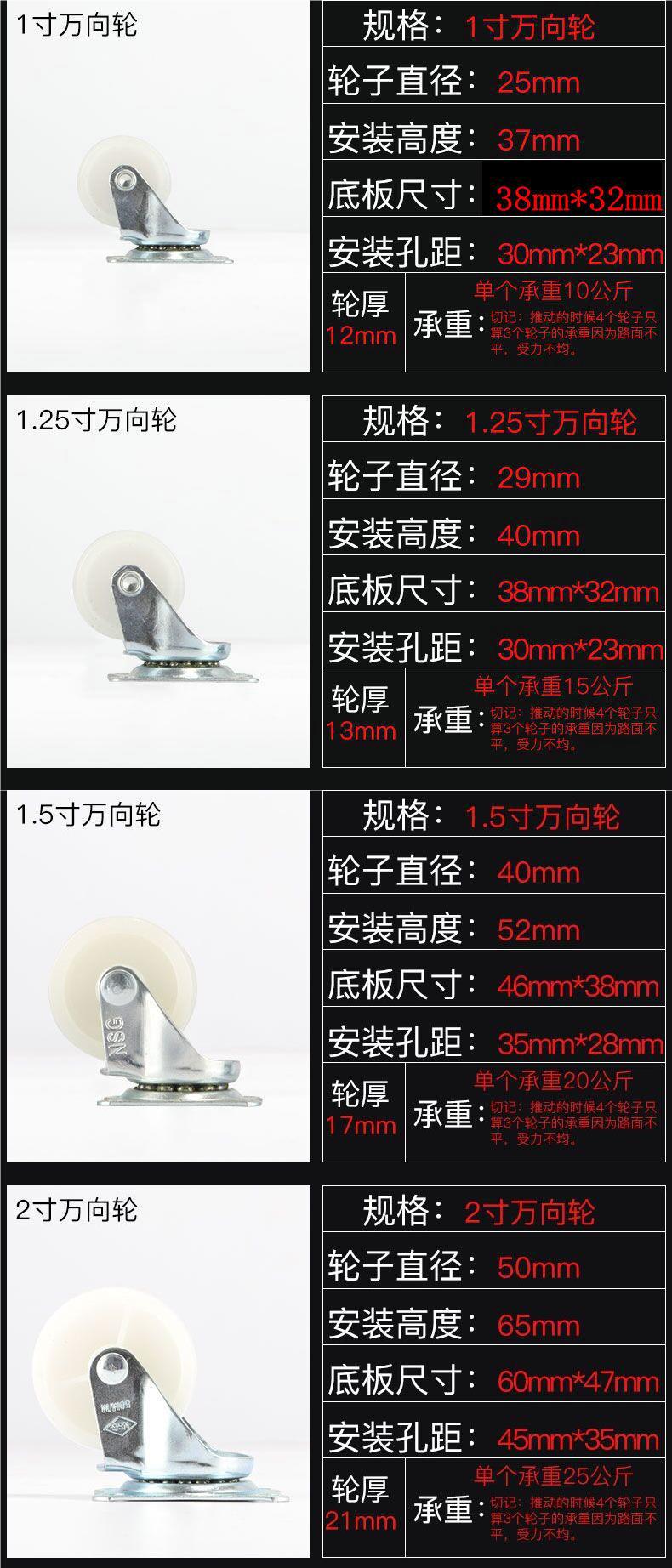 유니버설 휠 1 인치 1.25 인치 1.5 인치 2 인치 가구 도르래 지향성 휠 화분 침대 서랍 휠 라이트 휠