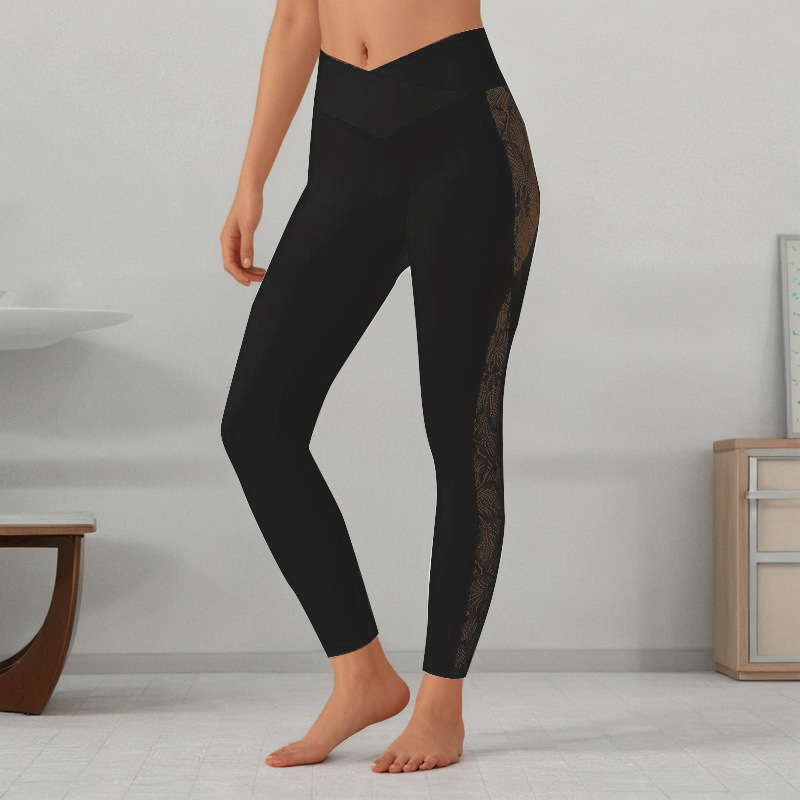 유럽과 미국의 폭발 슬림 레이스 스티칭 요가 레깅스 높은 허리 국경 달리기 피트니스 의류 도매 여성스토어 가기