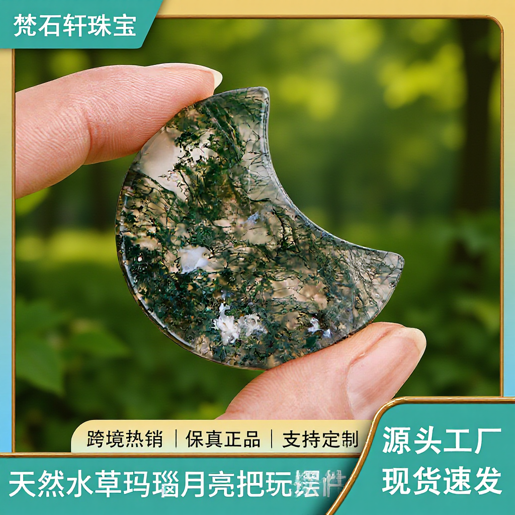 동중국 바다 국경 자연 크리스탈 원시 돌 물 잔디 마노 달 놀이는 물고기 탱크 예술 공예품을 넣을 수 있습니다스토어 가기