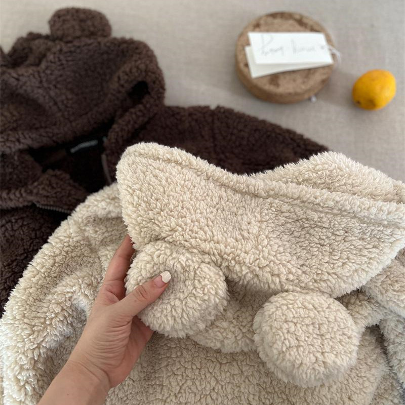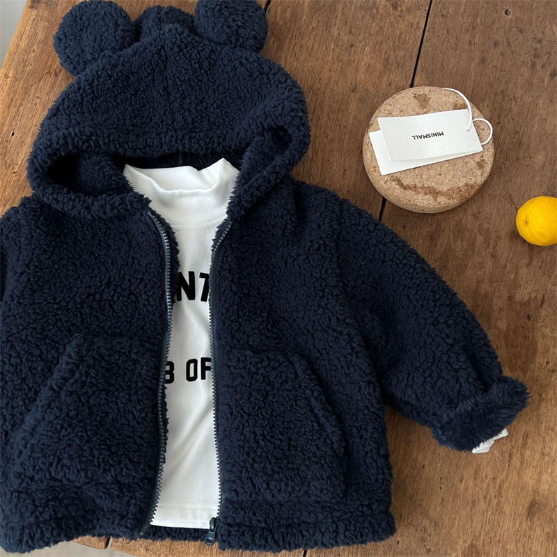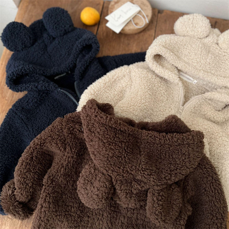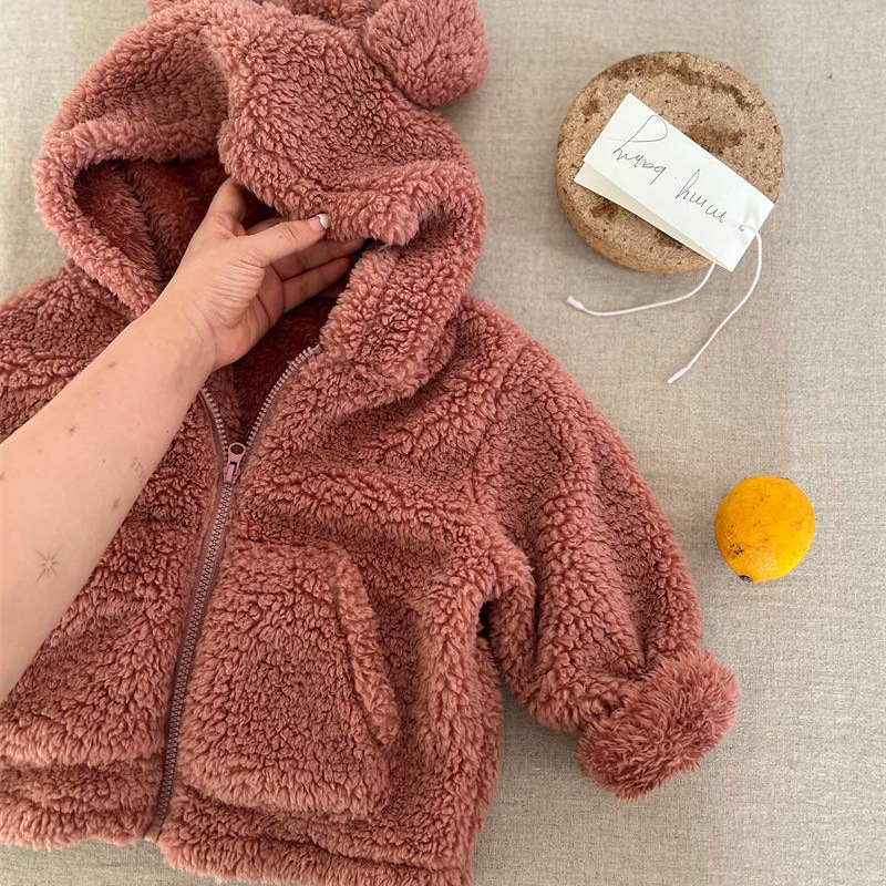 라임 어린이 코트 가을과 겨울 새로운 도착 남자와 여자의 귀-귀 스웨터 코트 아기의 단색 지퍼 셔츠 유행스토어 가기