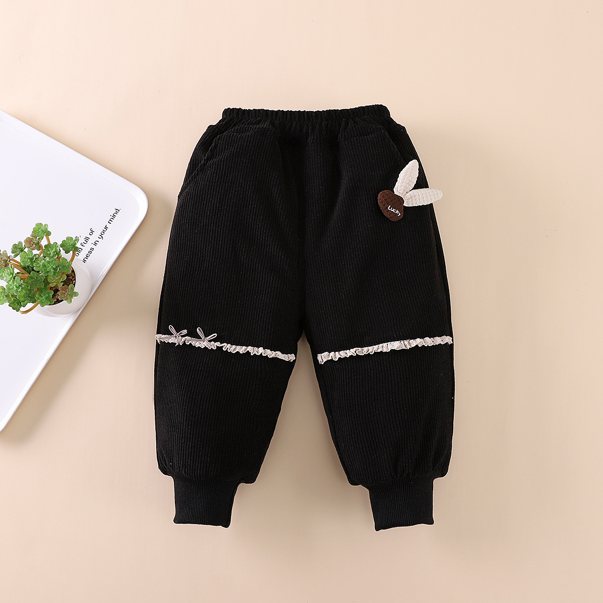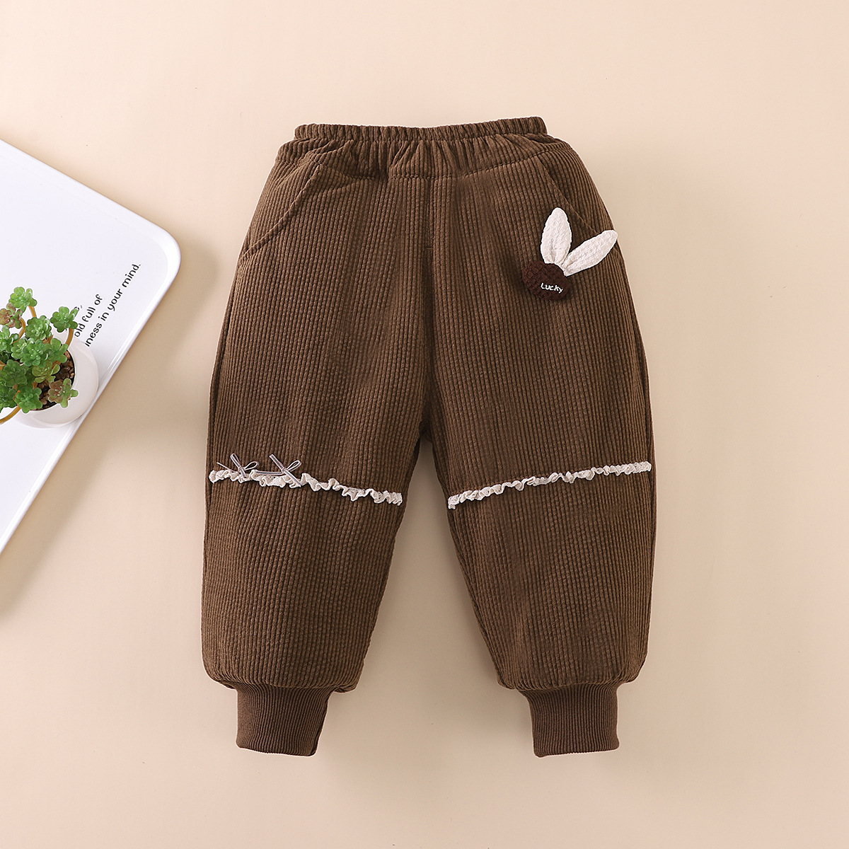 아기의 두꺼운 면화 바지 소녀의 가을과 겨울 새로운 어린이 캐주얼 다리 입체 토끼 머리 면화 바지스토어 가기