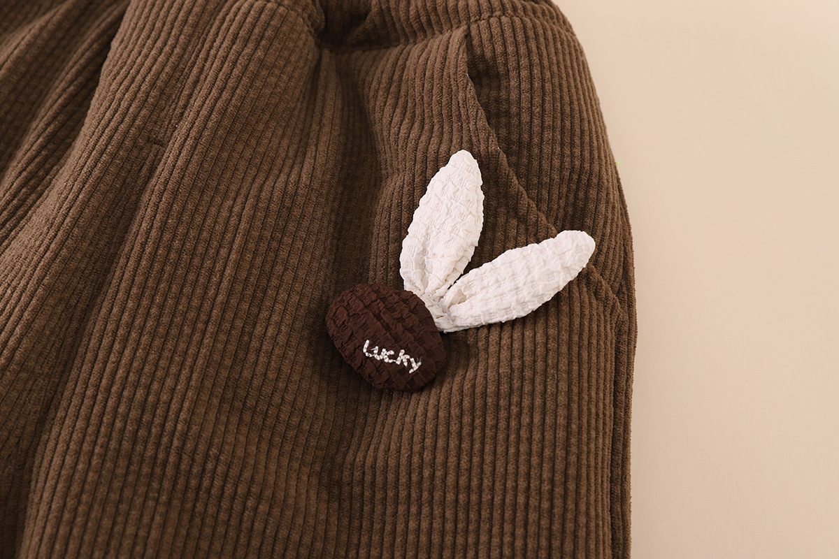 아기의 두꺼운 면화 바지 소녀의 가을과 겨울 새로운 어린이 캐주얼 다리 입체 토끼 머리 면화 바지