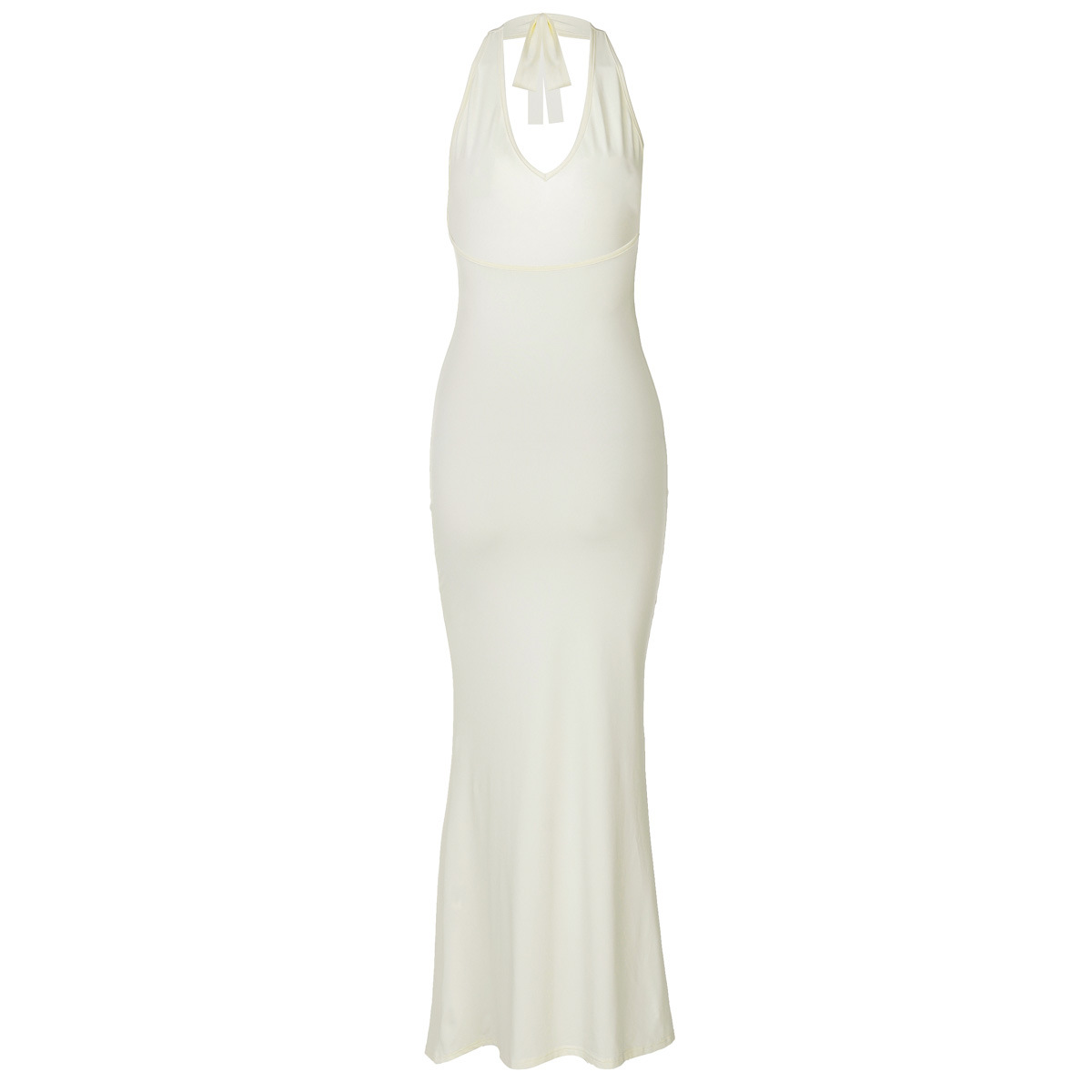 유럽과 미국의 새로운 여성의 2024 겨울 우아한 V-목 긴 원피스 섹시한 백리스 슬림 솔리드 컬러 원피스 여성스토어 가기