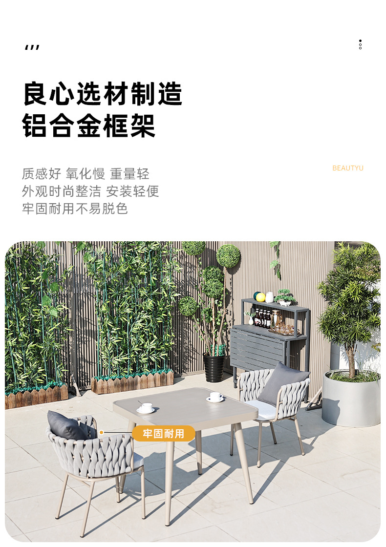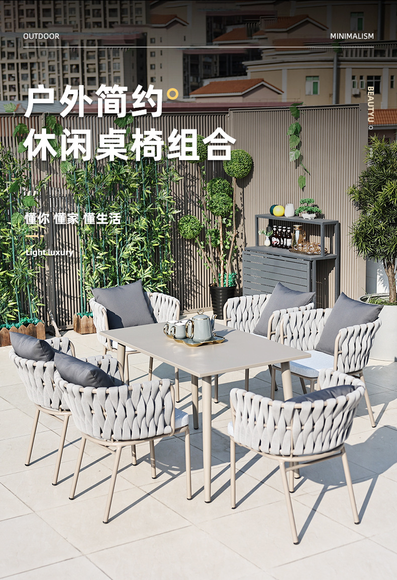 레저 야외 빌라 코트야드 정원 야외 홈스테이 발코니 방수 선 스크린 등나무 야외 식탁 및 의자 조합스토어 가기