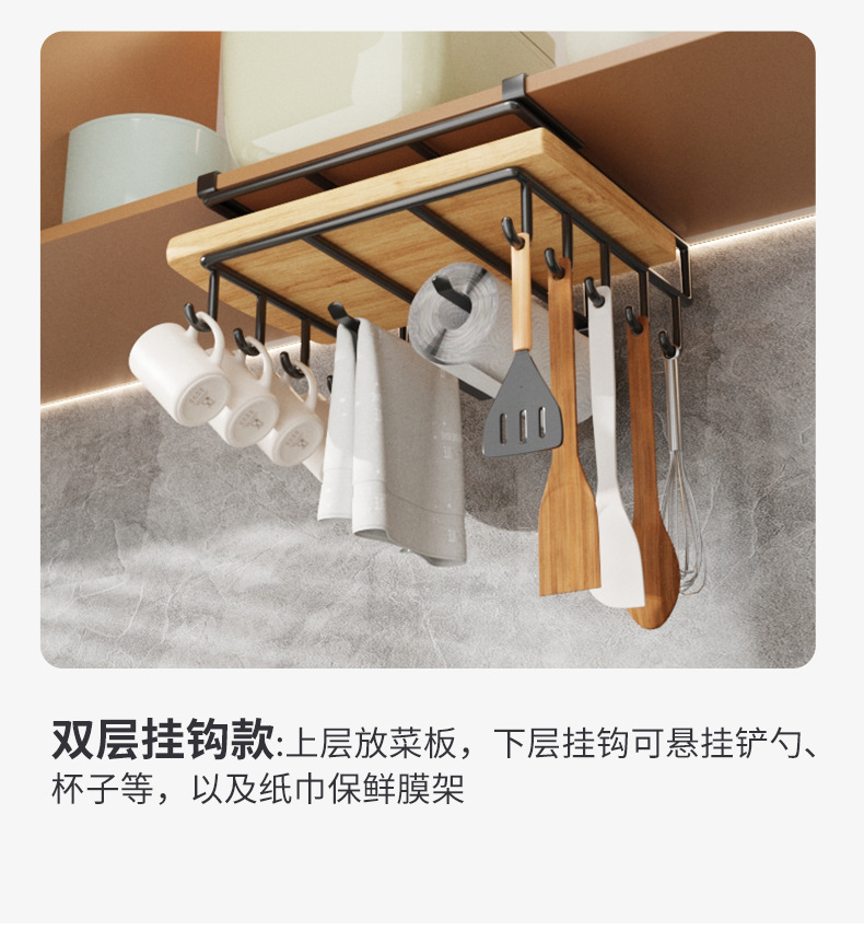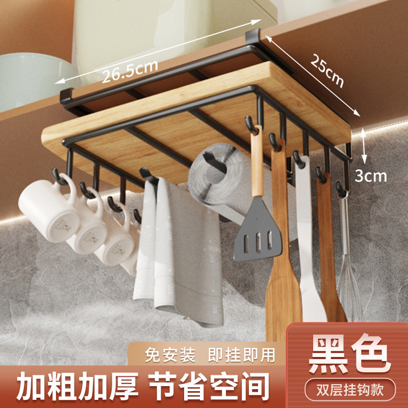 • [옵시디언 블랙] 특대형 2단 [도마걸이 + 종이타월 플라스틱 랩걸이 + 양면 후크]