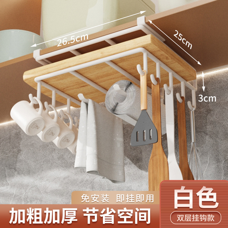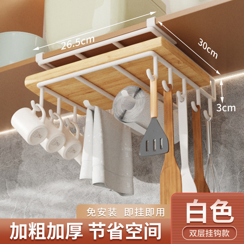 • [심플화이트] 특대형 2단 [도마걸이 + 종이타월 플라스틱랩걸이 + 양면후크]