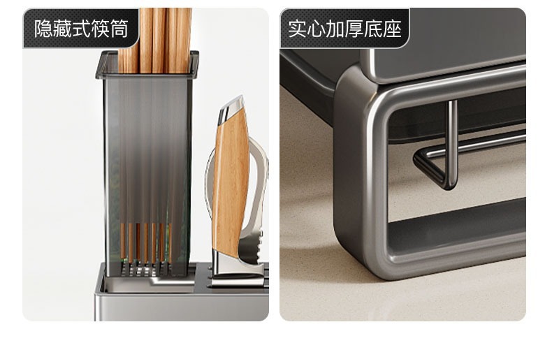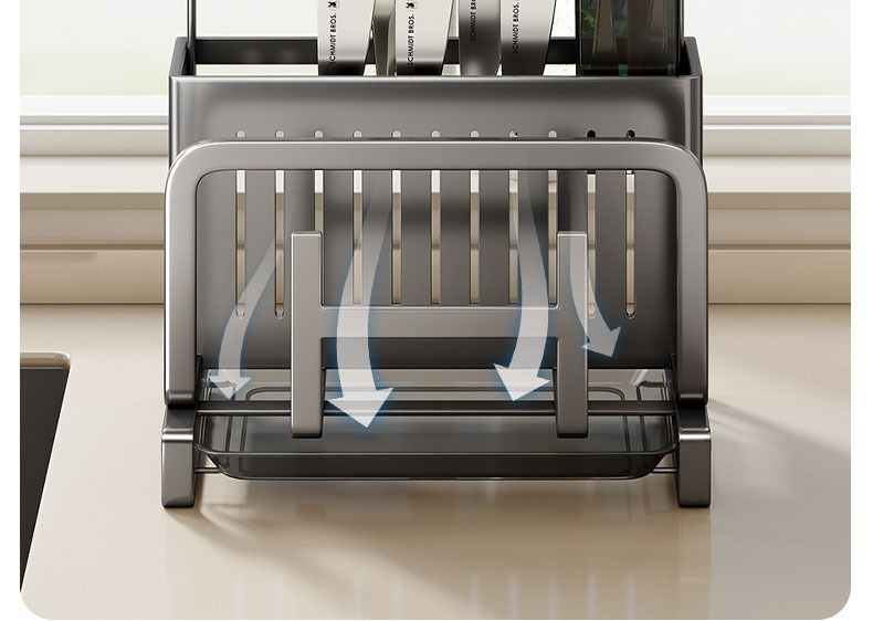 • 내추럴 스테인레스 스틸 - 디플렉터 접시걸이 2단 메인랙 + 젓가락통 + 도마걸이