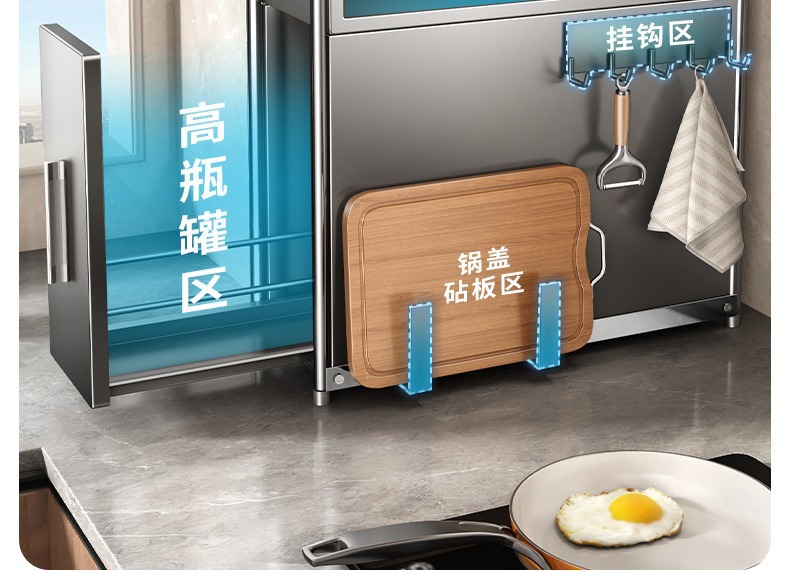 • 대형 건그레이* 서랍 스파이스 캐비닛 메인 랙 + 냄비 뚜껑 랙 + 후크 플레이트