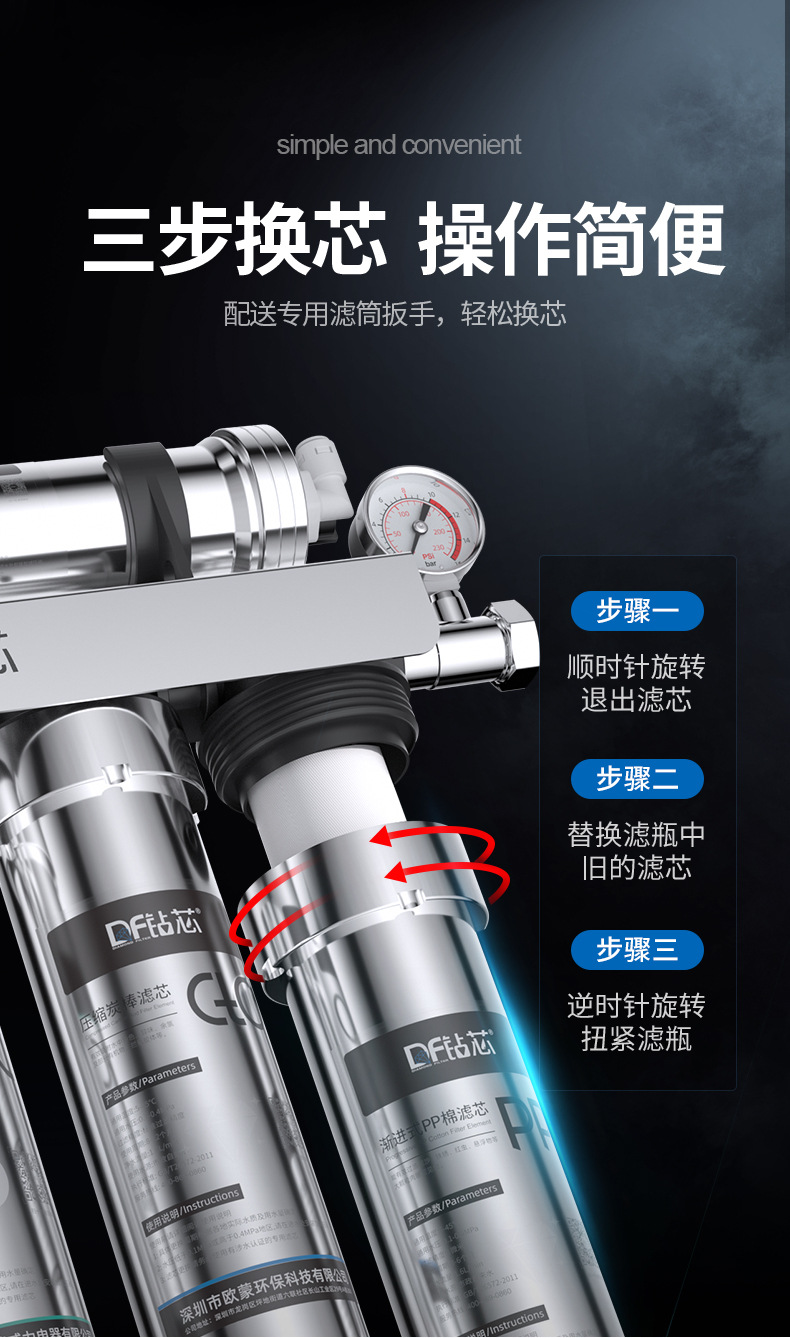 • 업그레이드된 스테인레스 스틸 5단 한외여과기(드릴 코어)