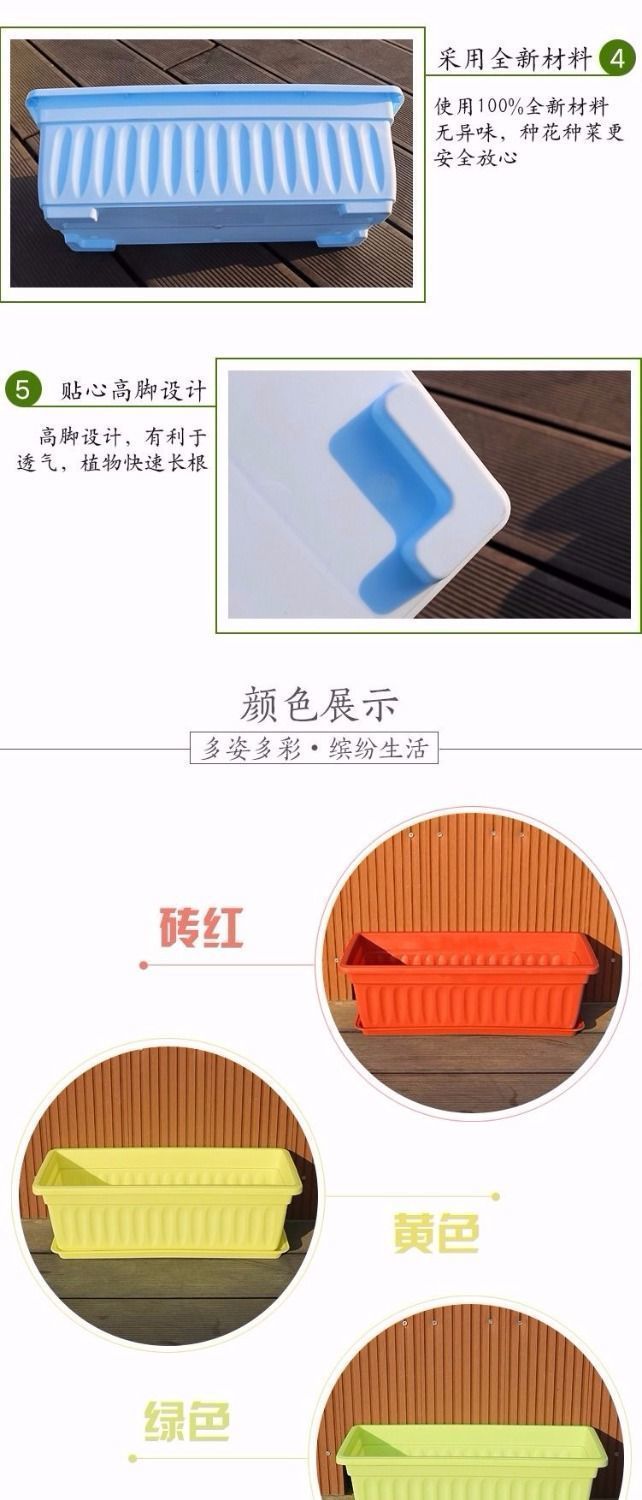가정용 야채 심기 분지 플라스틱 꽃 냄비 발코니 내구성있는 꽃 냄비 두꺼운 초대형 선 스크린 직사각형 심기 상자 야채 분지