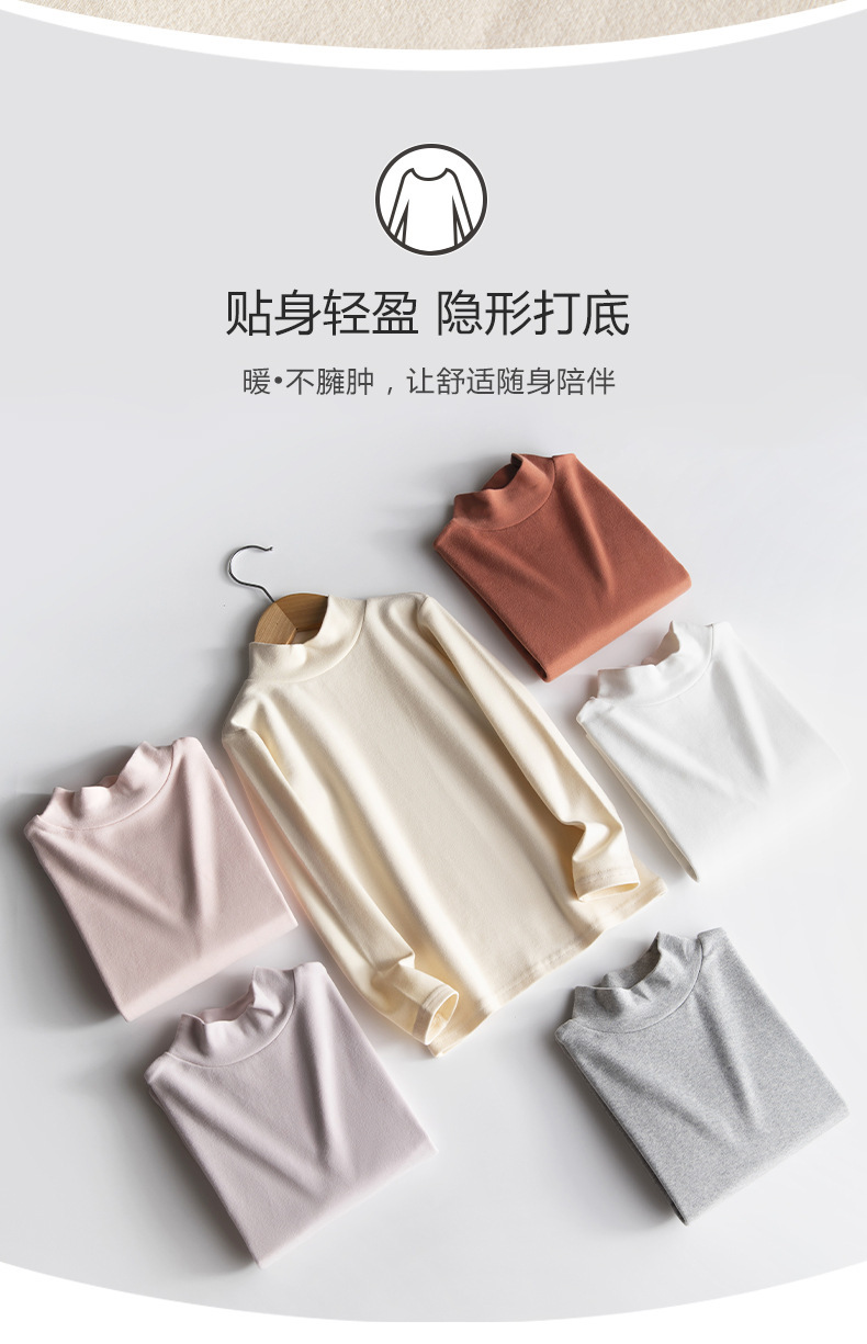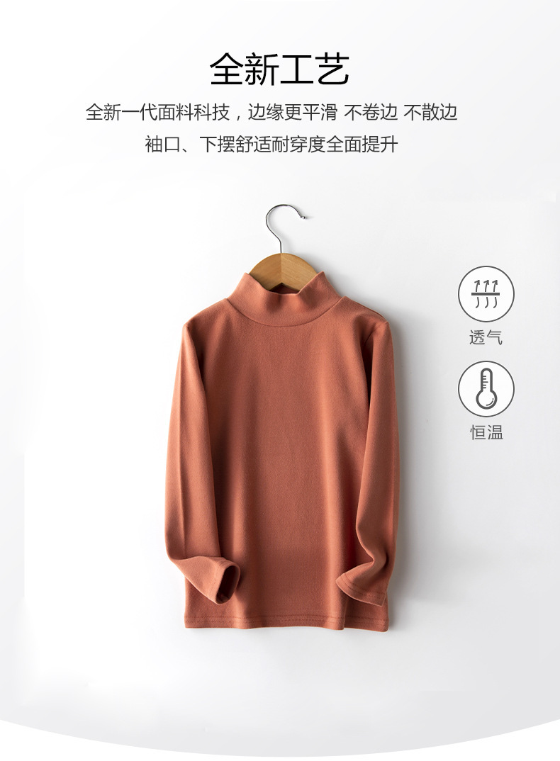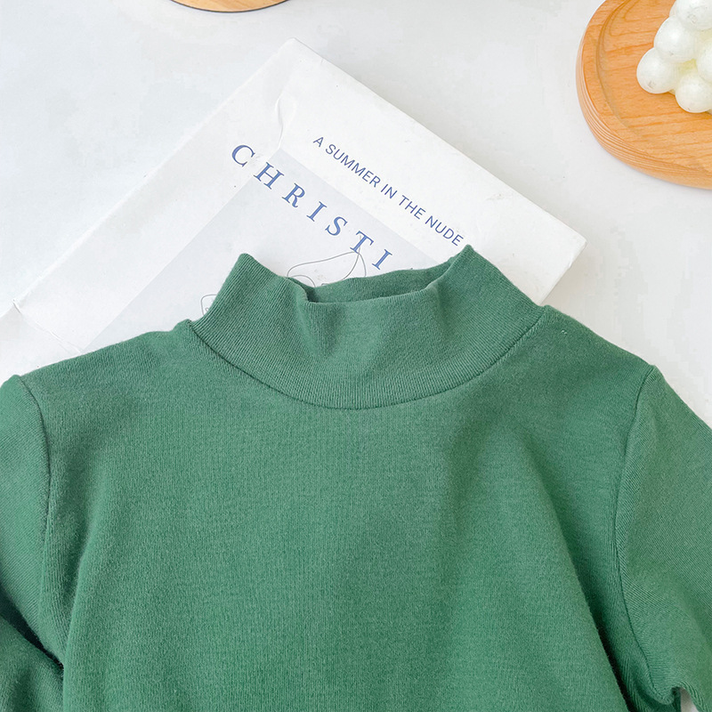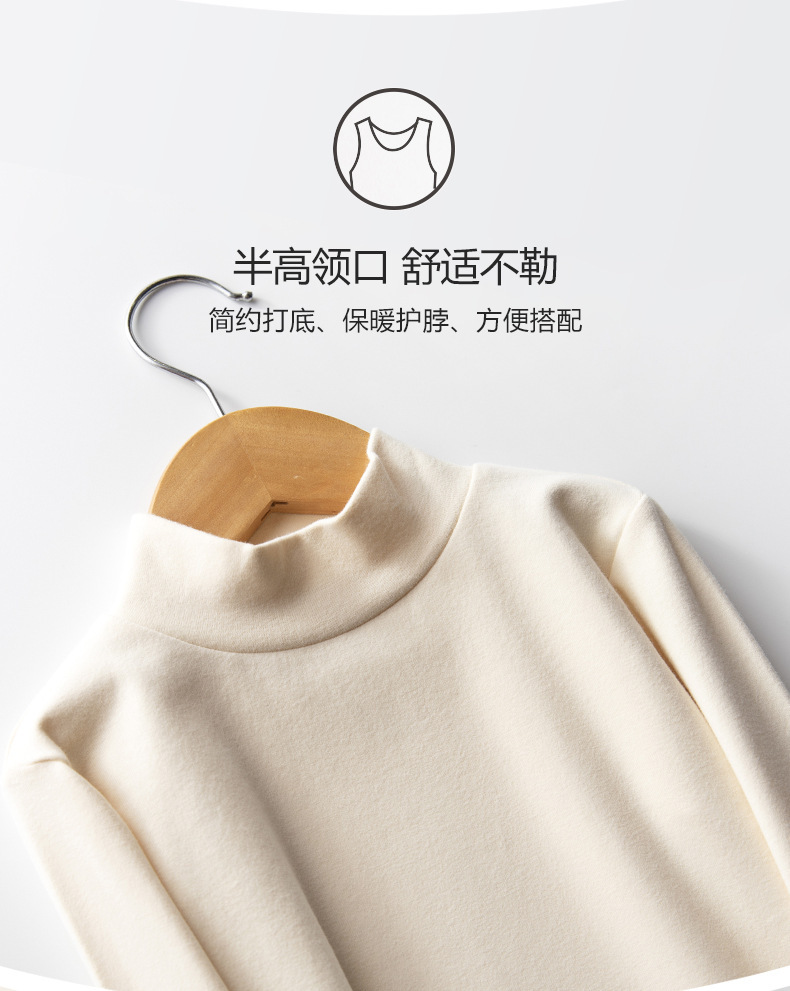면 어린이 반 높이 칼라베이스 셔츠 봄과 가을 소녀 내측 긴 소매 두꺼운 소녀 가을 2023 가을과 겨울 새로운