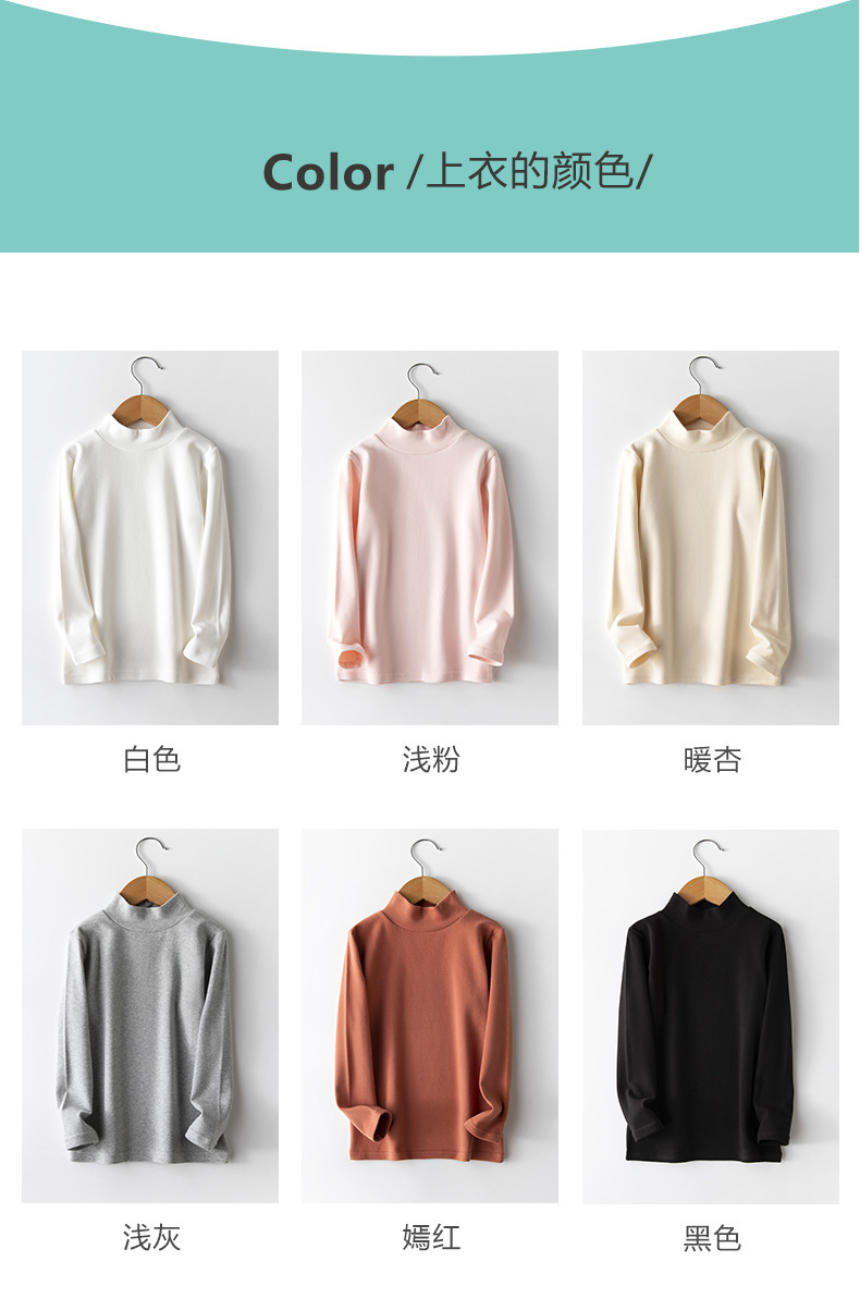 면 어린이 반 높이 칼라베이스 셔츠 봄과 가을 소녀 내측 긴 소매 두꺼운 소녀 가을 2023 가을과 겨울 새로운스토어 가기