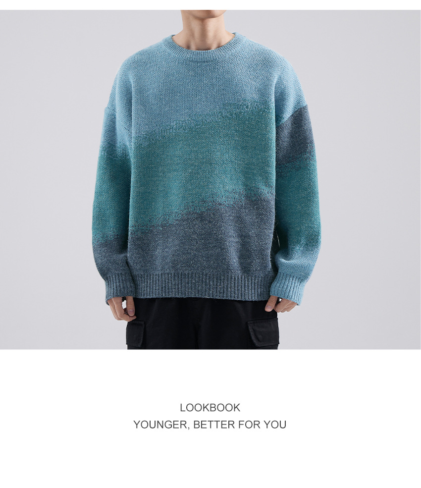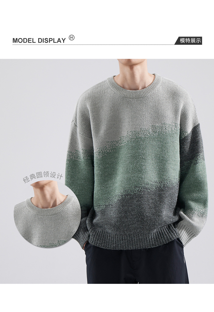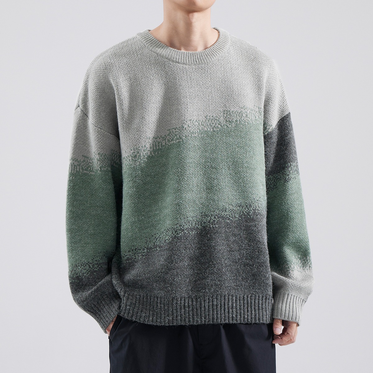 가을과 겨울 두꺼운 스웨터 남자 크루 넥 그라디언트 스웨터 패션 느슨한 게으른 스타일 남성 컬러 매칭 스웨터 스웨터 스웨터 스웨터스토어 가기