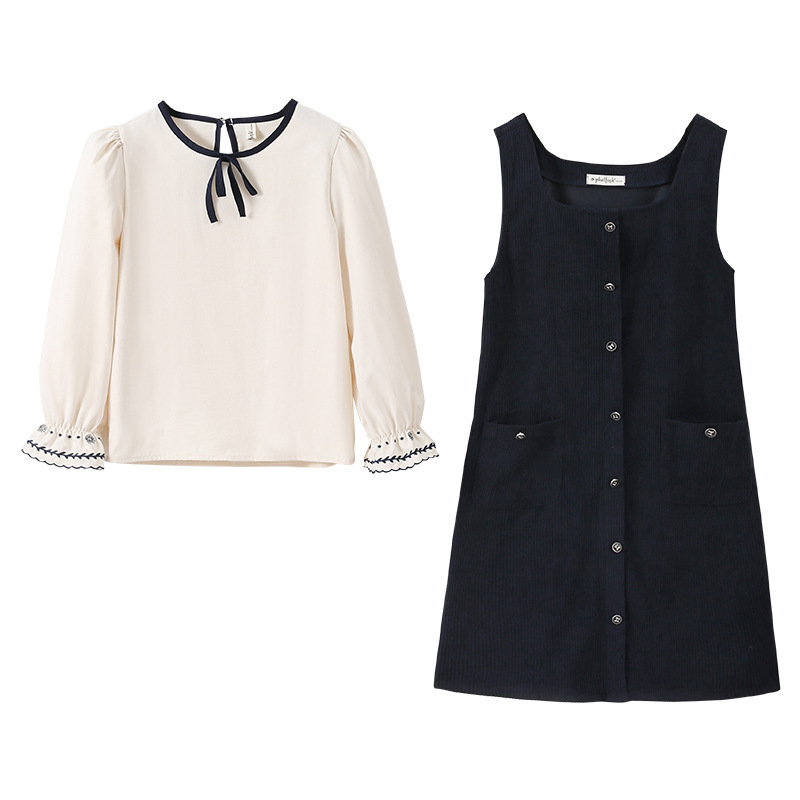 어린이 착용 소녀의 큰 소년의 2024 가을 옷 소녀의 자수 백킹 셔츠 폰 스커트 투피스 빅 보이의 인터넷 유명한 세트스토어 가기