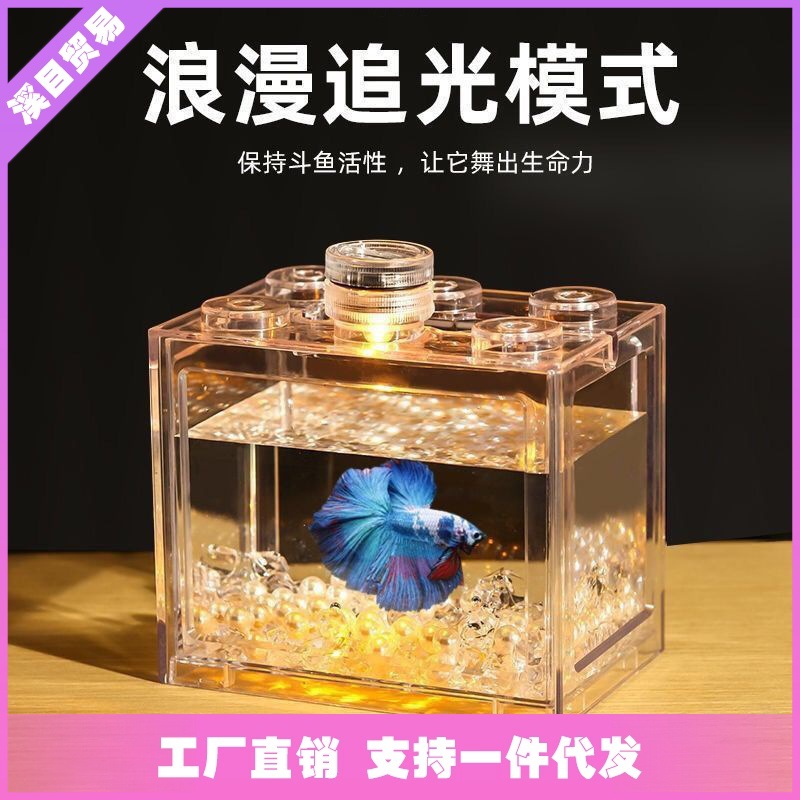 빌딩 블록 물고기 탱크 작은 물고기 탱크 작은 해초 공 상자 빌딩 블록 마이크로 풍경 물고기 탱크 물고기 상자 도매