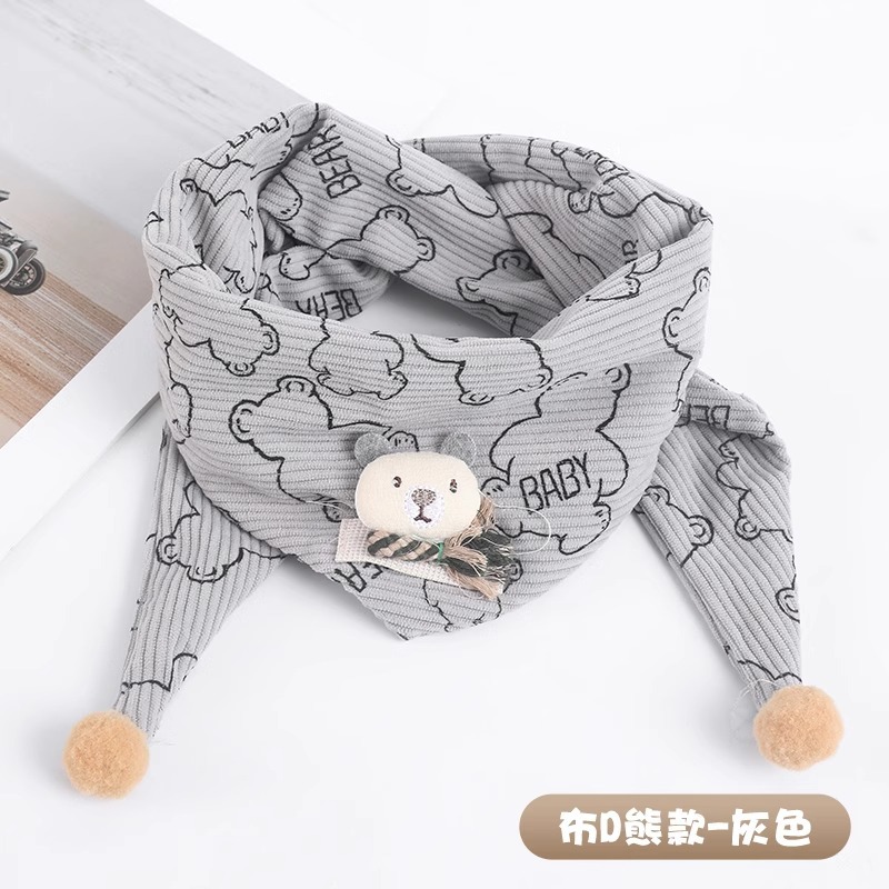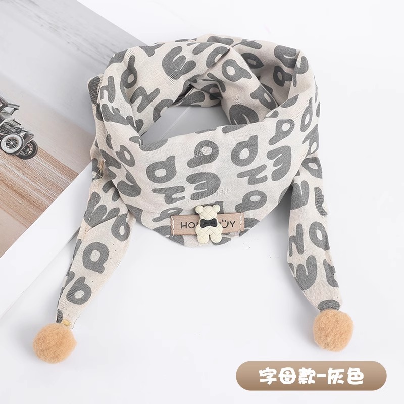 • 다이아몬드 실리콘 베어 레터 트라이앵글 스카프 - 그레이, 5개월~6세 권장
