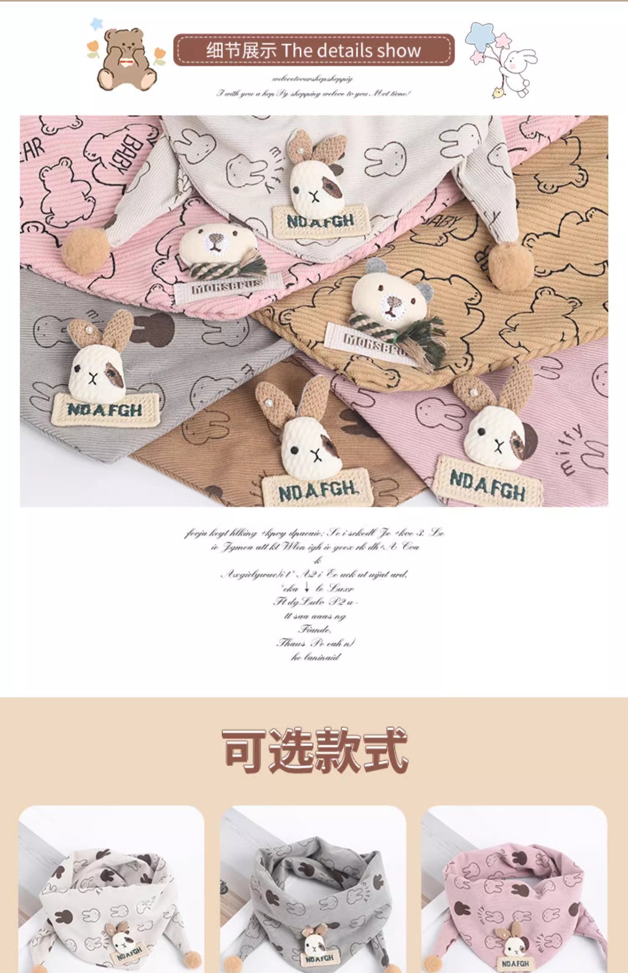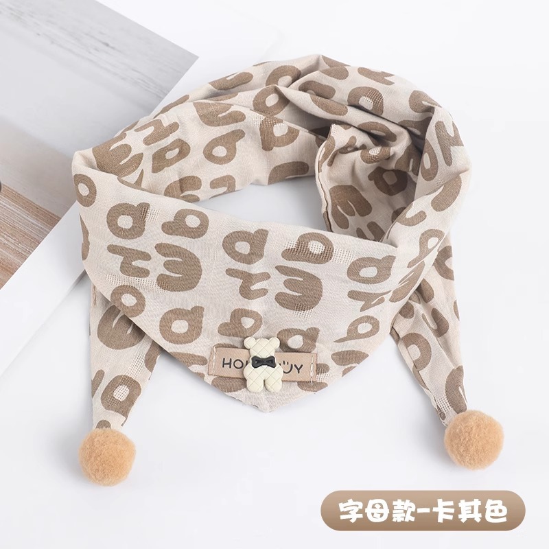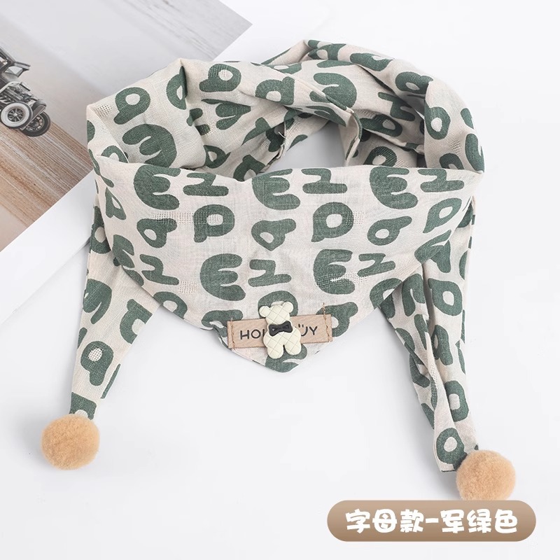 • 다이아몬드 실리콘 베어 레터 트라이앵글 스카프 - 카키, 5개월~6세 권장